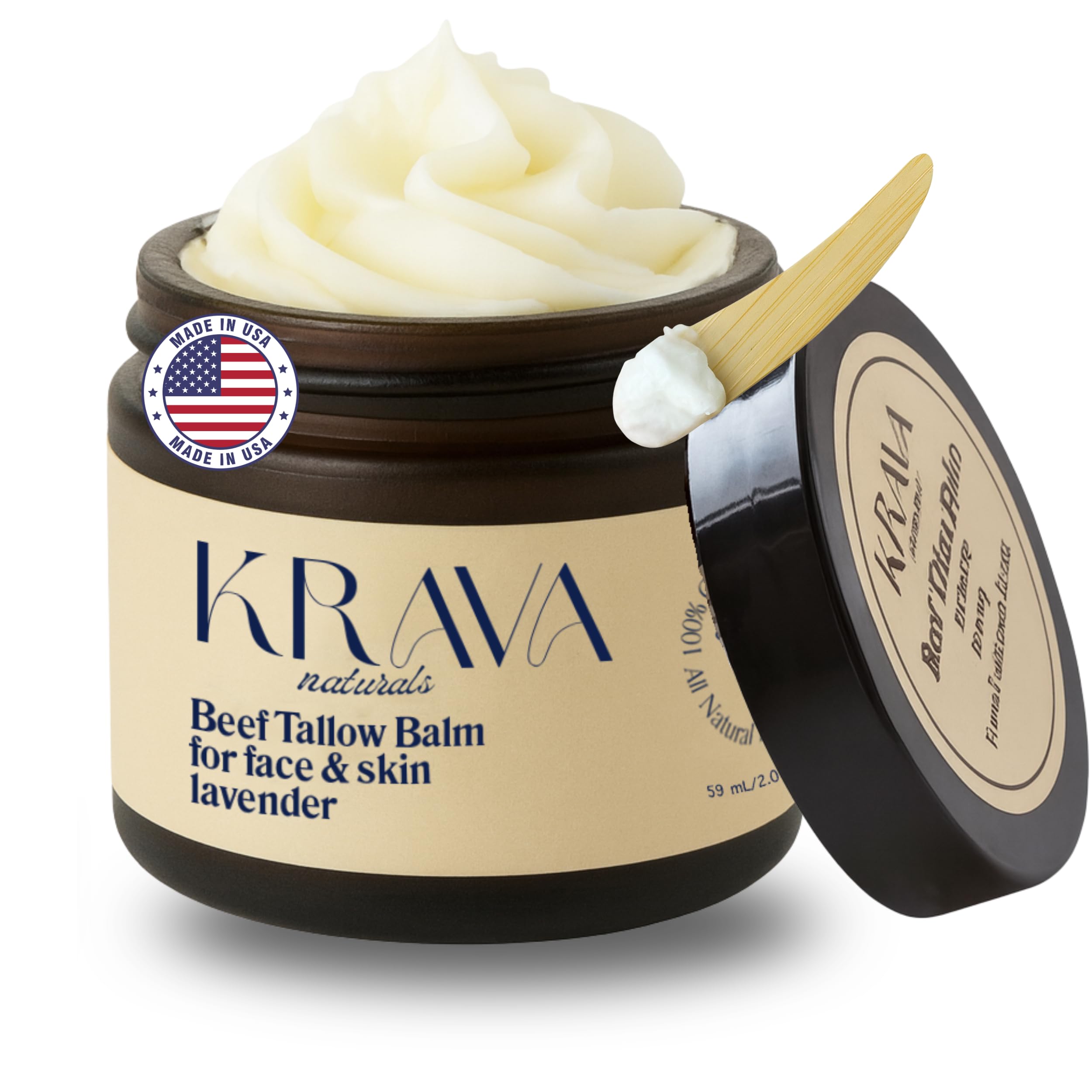 BAMBOO SCOOP INCLUDED: Each jar of our beef tallow for skin and whipped tallow balm includes an eco-friendly bamboo scoop for clean, mess-free use. This beef tallow moisturizer and tallow face moisturizer makes applying tallow cream simple and hygienic. MULTI-USE APPLICATION: Our whipped tallow balm isn't just for the face. Use this beef tallow for skin and beef tallow moisturizer on hands, body, and legs. A true tallow face moisturizer and tallow cream for all-over skin care and daily hydration. VITAMIN-RICH CARE: Packed with natural vitamins A, D, E, and K, our beef tallow for face and beef tallow for skin replenish nutrients. This tallow cream doubles as a whipped tallow balm and beef tallow moisturizer for glowing, youthful skin. SKIN RELIEF: This beef tallow moisturizer helps calm irritation and redness. Use our beef tallow for skin daily as a tallow face moisturizer or whipped tallow balm to lock in hydration, restore skin barrier health, and protect against dryness. HYDRATION MOISTURE: Our beef tallow for skin and beef tallow for face provide deep hydration and long-lasting moisture. This whipped tallow balm works as a beef tallow moisturizer, tallow face moisturizer, and tallow cream to keep dry skin soft, smooth, and radiant.