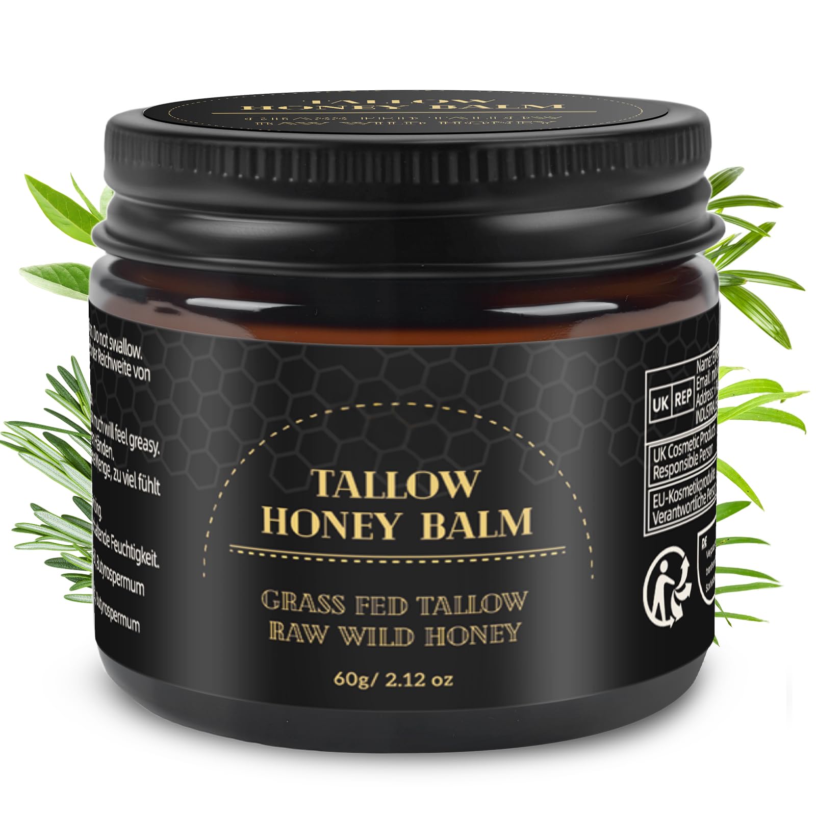 Beef Tallow for Skin Tallow and Honey Balm Organic Grass-Fed Beef Tallow Balm with Honey Face and Body Moisturizer(60g) 2.12 Ounce (Pack of 1)
