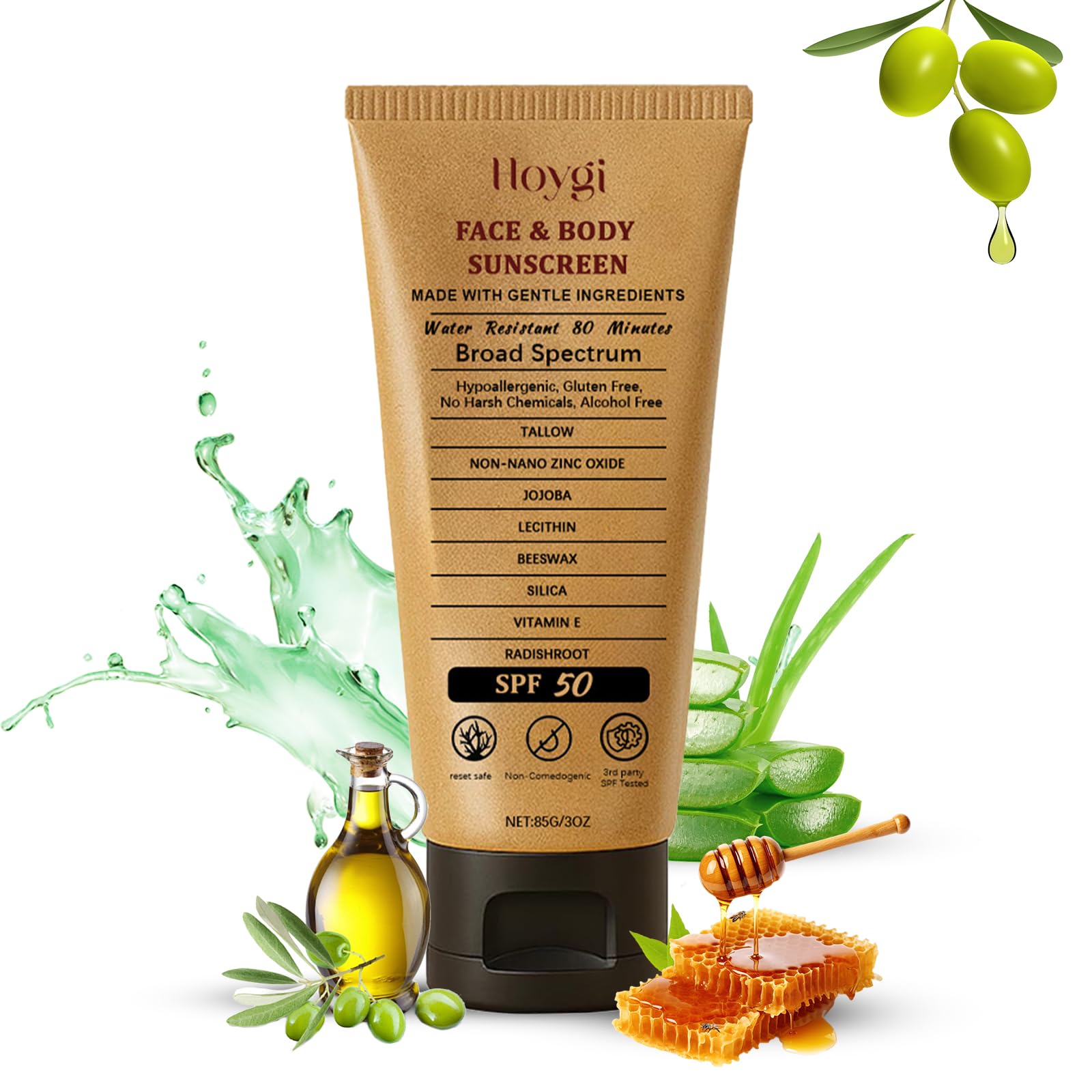 Beef Tallow Sunscreen Natural Mineral Beef Tallow & Zinc Oxide Sunscreen SPF 50 Refreshing and Non-greasy Safest Formula Water-Resistant Moisturizing for Women Men 3 oz (85 g)