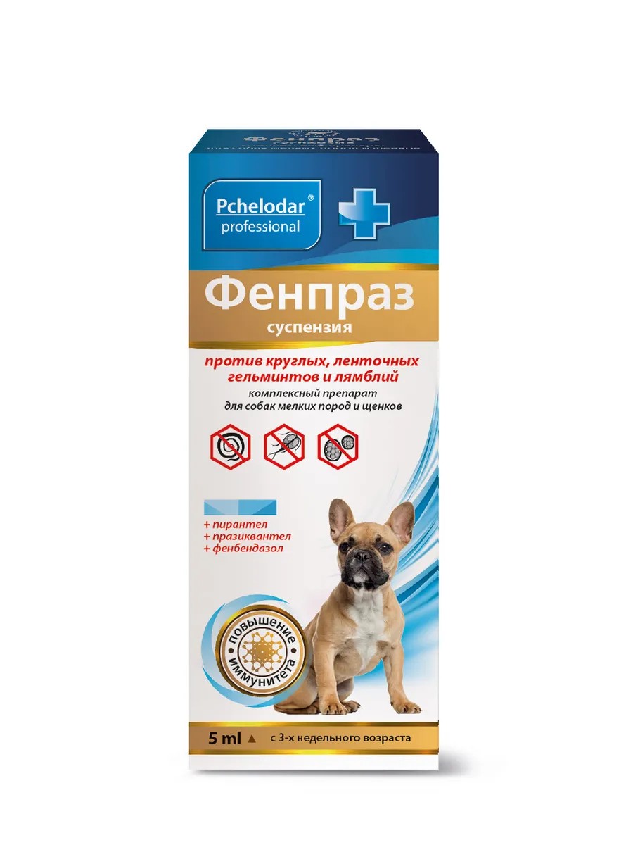 Препарат от глистов Пчелодар Фенпраз суспензия для мелких пород собак флакон, 5 мл