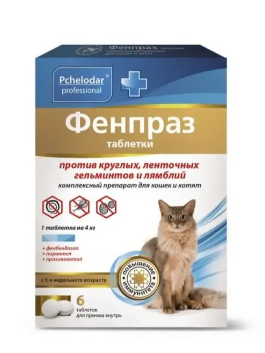 | Полное наименование товара | Таблетки от глистов Фенпраз для кошек и котят (6 таблеток) |