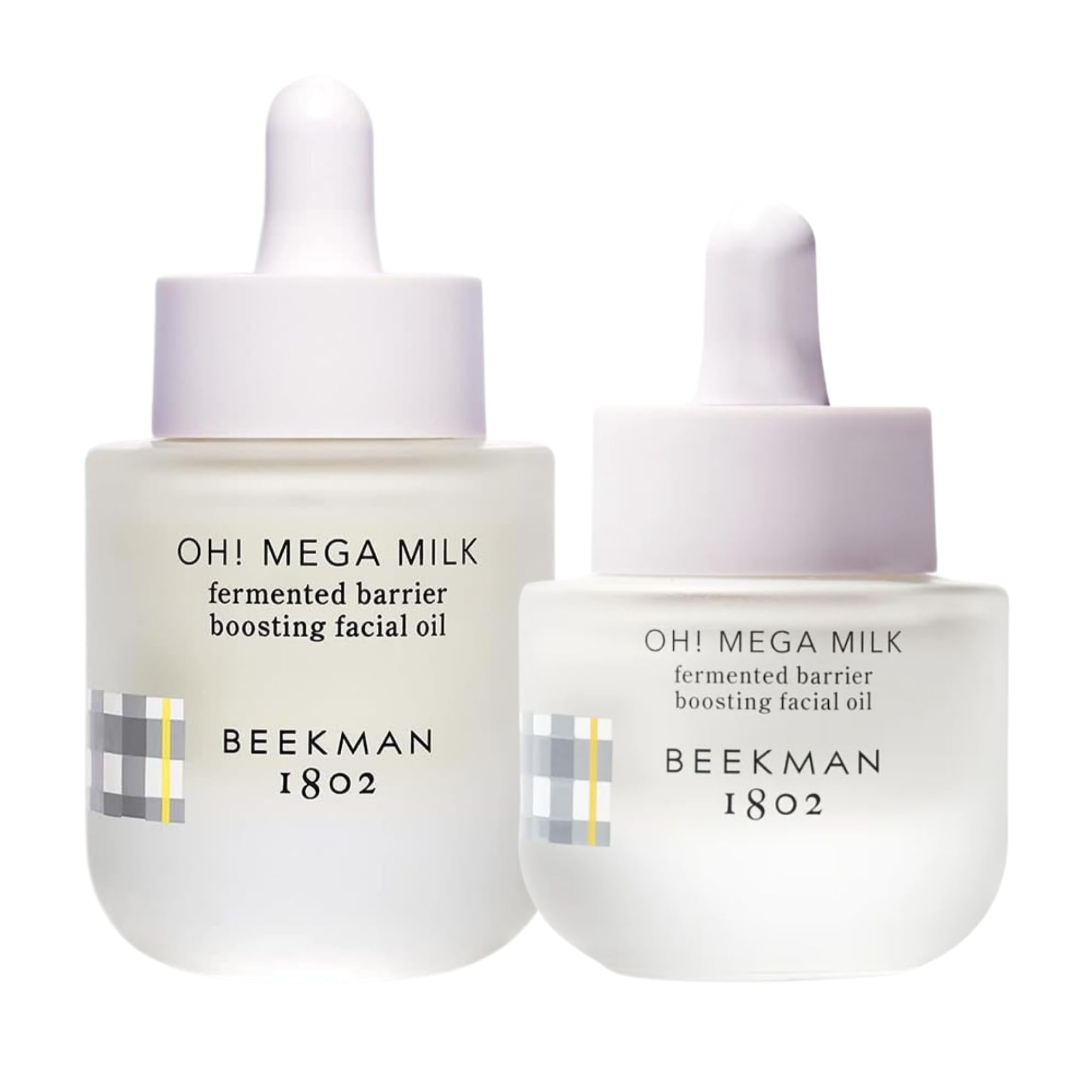 BEYOND CLEAN - Clinically Kind is the Beekman 1802 approach, our formula is free from toxins harsh ingredients known to irritate sensitive skin, including parabens, sulfates, phthalates, synthetic fragrances, abrasive exfoliant microplastics. THE GOAT MILK DIFFERENCE - Goat milk is rich in lactic acid (a natural exfoliant) contains the same pH as human skin, which helps keep the microbiome of your skin well-balanced prevent visible signs of irritation, sensitivity premature aging. BENEFITS - Omega fatty acids help strengthen and repair the skin barrier niacinamide softens skin, evens tone improves elasticity. Fermented plant oils deliver superior nourishment hydration for a silky after-feel that's never sticky or greasy. FERMENTED FACIAL OIL - Oh! Mega Milky is the first fermented facial oil to absorb 20 deeper with 90x more omega fatty acids for an ultra hydrated glow without the grease. It transforms dull, dry skin into mega-healthy and radiant skin. OH! MEGA MILKY BUNDLE - This bundle includes two bottles of our Oh! Mega Milky Facial Oil: 1 fl oz and 0.5 fl oz.