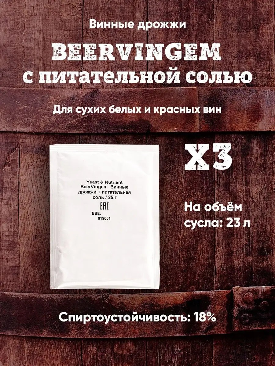 | Особенности продукта | винные дрожжи; дрожжи для вина |