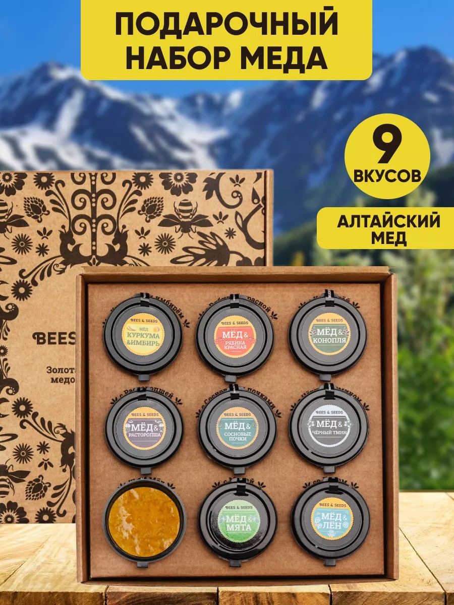 BEES & SEEDS Подарок учителю урбеч набор из натурального меда 9х50гр