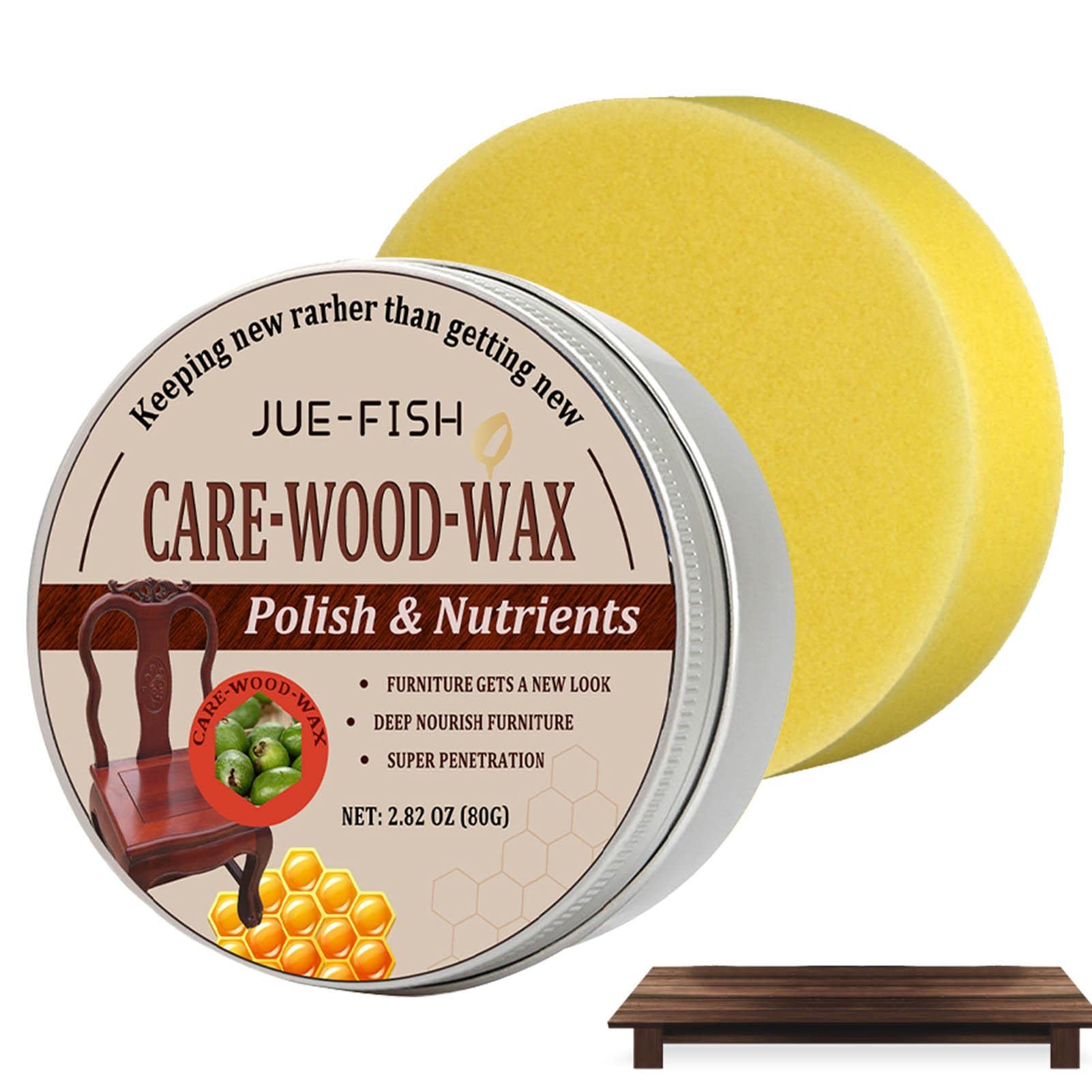 : The wax oil care polish can be used on tables, doors, cabinets, and wood floors. Specifications: Specifications: about 80G or 150G Size: as shown Function: Refresh the furniture, deeply nourish the furniture, protect the primary color Packing List: A: Wax Oil Care Polishing Agent 80G 1?Sponge 1 or B: Wax Oil Care Polishing Agent 150G 1?Sponge 1 Notes: Due to the lighting effects and shoot angles, there is a color difference in the product, please understand. Due to manual measurement, there is tolerance in the product size.?Widely Applicable?: This multi-purpose beeswax can not only clean your wooden furniture and wooden cabinets but also polish them. You can polish teak wood, antique or modern furniture. ?Easy to Carry?: The volume of the wax oil care polish is compact and easy to carry. The beeswax furniture polish is lightweight and portable, takes up very little space, and is easy to store. ?Preserve Natural Beauty?: Furniture polish preserves the natural beauty of your wood chips without changing their color. The beeswax makes a clean and shiny finish that will last 1 2 years. ?Easy to Operate?: Furniture polish provides good durability and can be safely used on beeswax furniture and treated wood. Just aim, apply, and wipe the woody beeswax to give the furniture a new look. ?Not Easy to Damage?: The wax oil care polish is made of high-quality material, which is durable, not easy to damage, and can be used for a long time. The furniture polish is safe and environmental.