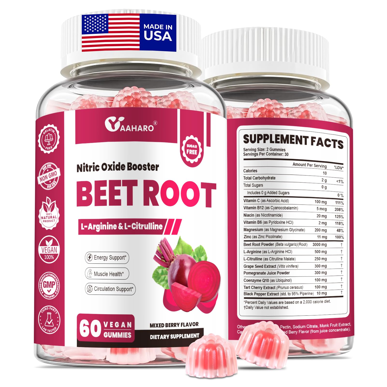 Beet Root Gummies - Nitric Oxide Booster Supplements for Men & Women with Beetroot L-Citrulline & L-Arginine - Heart Muscle & Circulation Support - Sugar Free Vegan Mixed Berry Flavor 60 Gummies