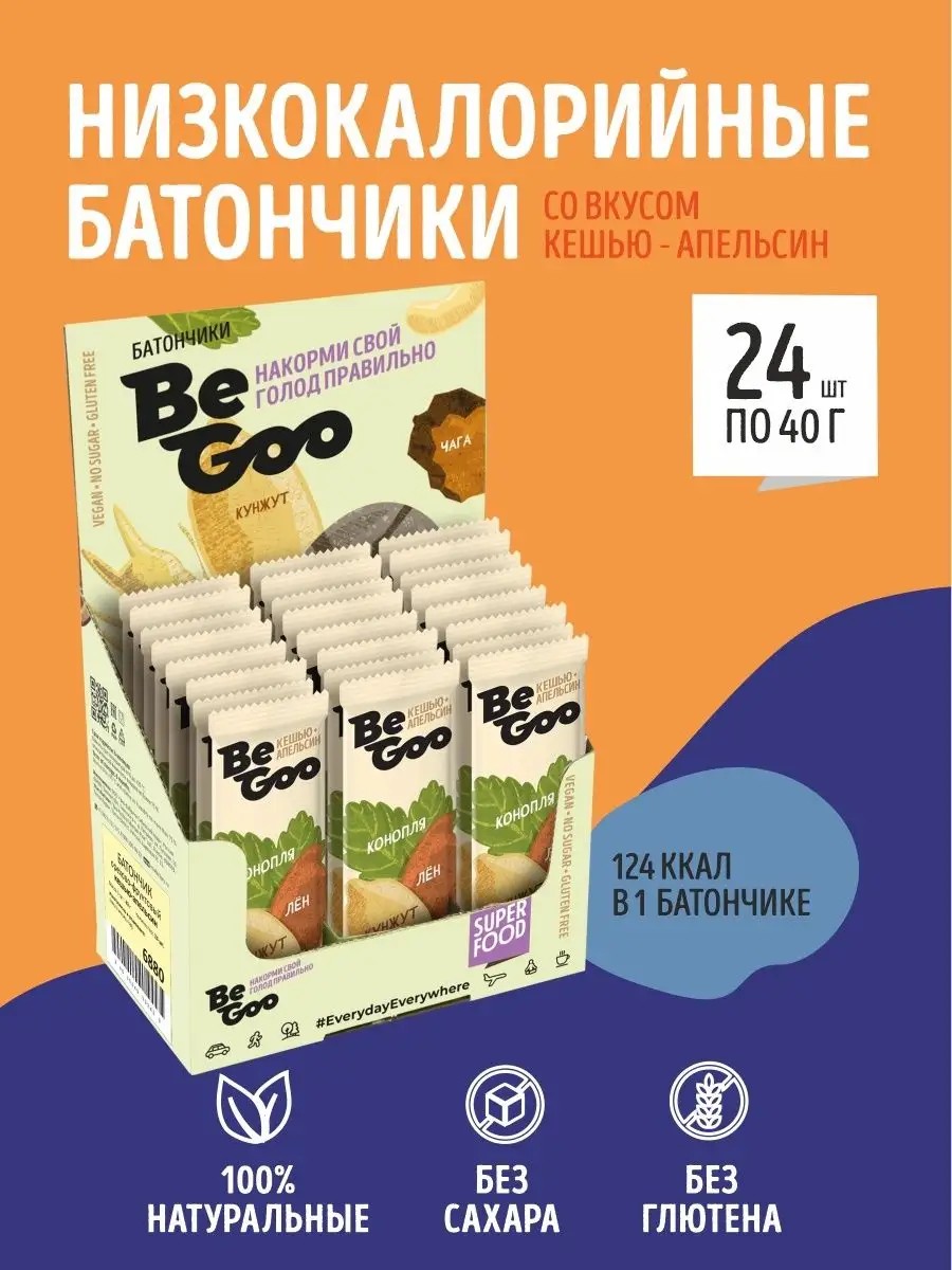 BeGoo Батончики кешью апельсин ПП 24 шт по 40 гр