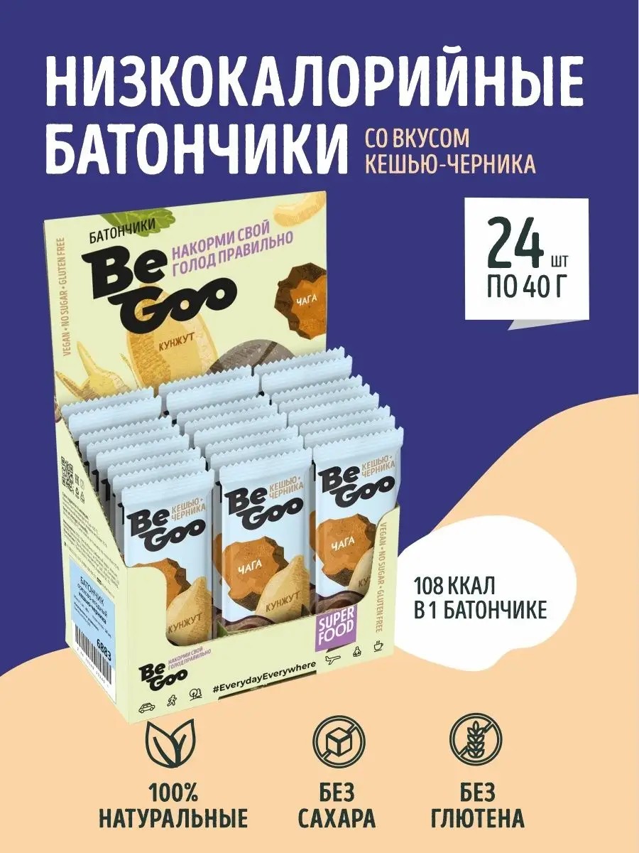 BeGoo ПП Батончики кешью черника 24 шт по 40 гр