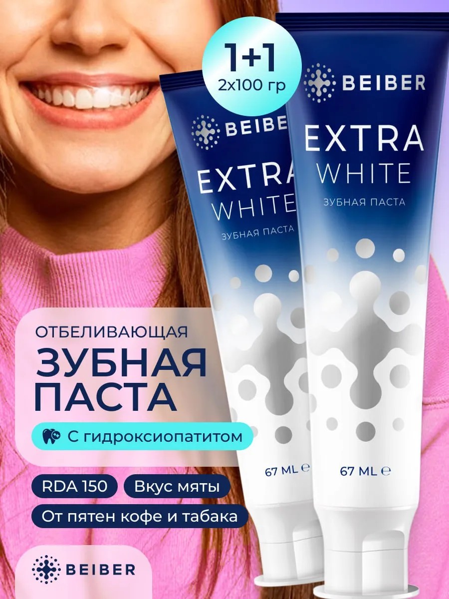 beiber Зубная паста отбеливающая, уход за зубами, набор 2 шт