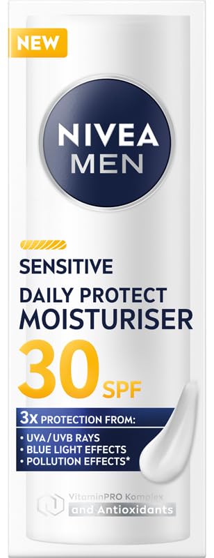 Nivea Men Sensitive Daily Protect Moisturizing face cream SPF30 offers advanced care for sensitive skin thanks to its triple protection formula. Enriched with VitaminPRO complex (vitamin E, provitamin B5 and chamomile extract) and antioxidants, this light and quickly absorbed cream protects the skin against UVA UVB radiation, blue light effects and impurities. The non-greasy formula provides an instant injection of moisture, keeping your skin hydrated and looking healthy all day long. Specially developed for sensitive skin, dermatologically tested and can also be used after shaving for extra protection. Apply it daily to a cleansed face and neck to strengthen your skin and provide a long-lasting feeling of comfort and freshness. INGREDIENTS Aqua, Glycerin, C12-15 Alkyl Benzoate, Methylpropanediol, Glyceryl Stearate, Phenylbenzimidazole Sulfonic Acid, Etylhexyl Triazone, Cetearyl Alcohol, Glycyrrhiza Inflata Root Extract, Tocopheryl Acetate, Panthenol, Pantolactone, Xanthan Gum, Sodium Stearoyl Glutamate, Maltodextrin, Sodium Hydroxide, citric acid, 1,2-hexanediol, ethylhexylglycerin, phenoxyethanol, perfume INSTRUCTIONS FOR USE Use daily on cleansed face and neck. Reuse after swimming or sweating. Use in combination with other sun protection measures. SAFETY WARNING Avoid contact with the eyes. See moreSkin tolerance dermatologically tested. Direct fluid injection. SPF 30. Triple protection against UVA UVB rays, blue light and pollutants. The light, non-greasy formula is quickly absorbed.NIVEA MEN Daily Protect Hydraterend Gezichtscrème SPF 30, 50ml Nivea Men Sensitive Daily Protect Hydraterende gezichtscrème SPF30 biedt een geavanceerde verzorging van de gevoelige huid dankzij de drievoudige beschermingsformule. Verrijkt met VitaminPRO complex (vitamine E, provitamine B5 en kamille-extract) en antioxidanten, beschermt deze lichte en snel intrekkende crème de huid tegen UVA- UVB-straling, blauwlichteffecten en onzuiverheden. De niet-vette formule zorgt voor een onmiddellijke vochtinjectie, waardoor je huid de hele dag gehydrateerd blijft en er gezond uitziet. Speciaal ontwikkeld voor de gevoelige huid, dermatologisch getest en kan ook na het scheren worden gebruikt voor extra bescherming. Breng het dagelijks aan op een gereinigde gezicht en hals om je huid te versterken en een langdurig gevoel van comfort en frisheid te geven. INGREDIËNTEN Aqua, glycerine, C12-15 Alkyl Benzoaat, methylpropanediol, glyceryl stearaat, phenylbenzimidazole sulfonic acid, etylhexyl triazone, cetearyl alcohol, glycyrrhiza inflata wortel extract, tocopheryl acetaat, panthenol, Pantolactone, Xanthan Gum, natriumstearoyl glutamaat, maltodextrin, natriumhydroxide, citroenzuur, 1,2-hexanediol, ethylhexylglycerine, fenoxyethanol, parfum GEBRUIKSAANWIJZING Gebruik dagelijks op een gereinigde gezicht en hals. Hergebruik na zwemmen of zweeten. Gebruik in combinatie met andere zonnestrijdingsmaatregelen. VEILIGHEIDSWAARSCHUWING Vermijd contact met de ogen. Meer bekijkenHuidtolerantie dermatologisch getest. Directe vochtinjectie. SPF 30. Drievoudige bescherming tegen UVA UVB-straling, blauw licht en vervuilende effecten. De lichte, niet-vette formule trekt snel in.