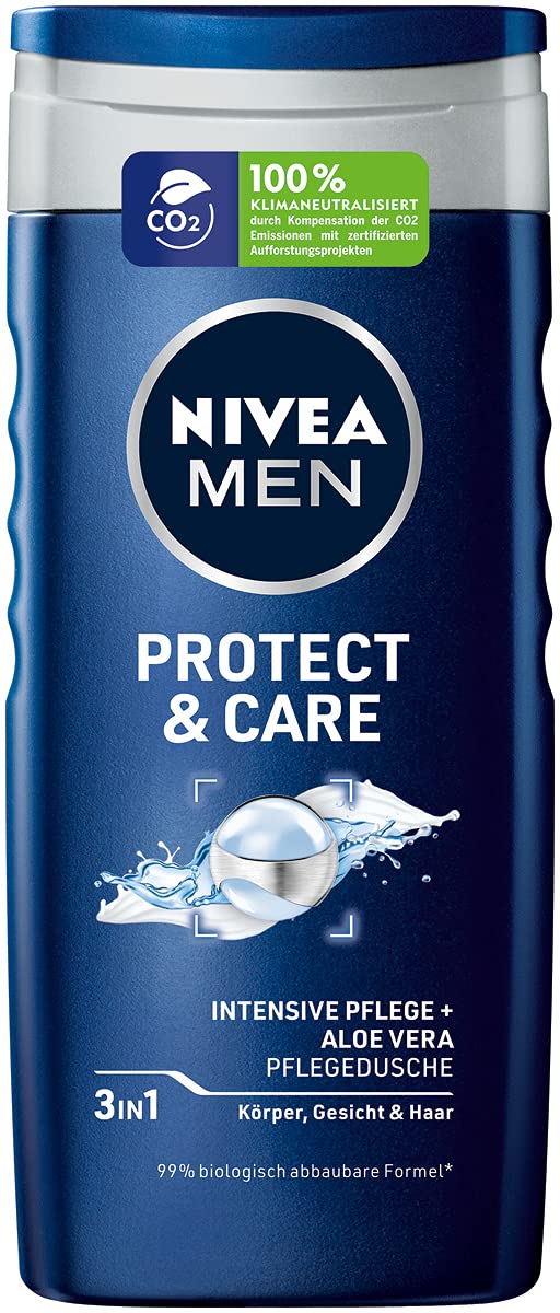 NIVEA Men Protect Care nourishing shower gel – for manly cared for skin. The mild NIVEA Men Protect Care shower gel is ideal for men who want a well-groomed skin feeling after showering. Thanks to its formula with aloe vera, the NIVEA Men shower gel cleanses the skin and at the same time provides a feeling of intensive moisture care. In addition, the NIVEA Men nourishing shower gel protects the skin against drying out. Good for the skin and the environment: the formula of the caring shower gel is 99 biodegradable and contains no solid microplastic particles. The bottle consists of 97 recycled material (without cap and label). Product benefits in detail: NIVEA Men Protect Care nourishing shower gel. Intensive moisture care Formula with Aloe Protects the skin from drying out. By offsetting CO2 emissions with certified afforestation projects. According to OECD or equivalent methods. INGREDIENTS Aqua, sodium laureth sulfate, cocamidopropyl betaine, PEG-7 glyceryl coconut coat, glycerin, helianthus annuus seed oil, aloe barbadensis leaf juice powder, sodium chloride, citric acid, PEG-3 distearate, PEG-40 hydrogenated castor oil, PEG-200 hydrogenated castor oil. glyceryl palmat glass. E, sodium benzoate, limonene, linalool, perfumeScope of delivery: 1 x Nivea Men Protect Care care shower 250ml moisturizing cleansing with aloe vera item number 92864. Intensive hydration: The Nivea Men shower gel protects the skin from drying out. Dermatologically tested. Skin and environment: This shower gel is a 100 climate neutral product with a 99 biodegradable formula and without microplastics. Aloe vera: Thanks to its caring formula with aloe vera, this shower gel protects the skin from drying out and provides a feeling of intense hydration. Protect Care: The mild Nivea Men Protect Care shower gel is ideal for men who want a well-groomed skin feeling after showering.Nivea Men Protect Care Douchegel, verzorgend, 250 ml, hydraterend, met aloë vera Protect Care – biologisch afbreekbare formule. NIVEA Men Protect Care verzorgende douchegel – voor een mannelijk verzorgde huid. De milde NIVEA Men Protect Care-douchegel is ideaal voor mannen die na het douchen een verzorgd huidgevoel willen. Dankzij de formule met aloë vera reinigt de NIVEA Men douchegel de huid en geeft tegelijkertijd een gevoel van intensieve vochtverzorging. Daarnaast beschermt de NIVEA Men verzorgende douchegel de huid tegen uitdrogen. Goed voor huid en milieu: de formule van de verzorgende douchegel is voor 99 biologisch afbreekbaar en bevat geen vaste microplastic deeltjes. De fles bestaat voor 97 uit gerecycled materiaal (zonder dop en label). Productvoordelen in detail: NIVEA Men Protect Care verzorgende douchegel. Intensieve vochtverzorging Formule met Aloë Beschermt de huid tegen uitdrogen. Door compensatie van de CO2-emissies met gecertificeerde bebossingsprojecten. Volgens OESO of gelijkwaardige methoden. INGREDIËNTEN Aqua, natriumlaureth sulfaat, cocamidopropyl betaïne, PEG-7 glycerylcococoat, glycerine, helianthus annuus zaadolie, aloë barbadensis bladsappoeder, natriumchloride, citrisch zuur, PEG-3 distearaat, PEG-40 gehydrogeneerde castorolie, PEG-200 gehydrogeneerd castorolie. glyceryl palmatglas. E, natriumbenzoaat, limoneen, linalool, parfumInhoud van de levering: 1 x Nivea Men Protect Care verzorgende douche 250 ml vochtinbrengende reiniging met aloë vera artikelnummer 92864. Intensieve hydratatie: De Nivea Men-douchegel beschermt de huid tegen uitdrogen. Dermatologisch getest. Huid en milieu: Deze douchegel is een 100 klimaatneutraal product met een 99 biologisch afbreekbare formule en zonder microplastics. Aloë vera: Dankzij de verzorgende formule met aloë vera beschermt deze douchegel de huid tegen uitdrogen en geeft hij een gevoel van intense hydratatie. Protect Care: De milde Nivea Men Protect Care-douchegel is ideaal voor mannen die na het douchen een verzorgd huidgevoel willen.
