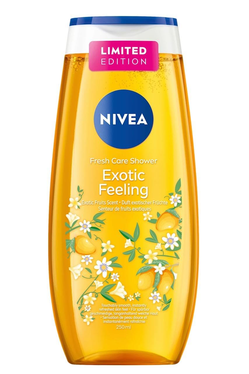 NIVEA Shower gel scent of exotic fruit - Exotic Feeling - 250 ml The Exotic Feeling shower from NIVEA is a gentle and refreshing care for the skin. The shower gel cleanses gently and spreads a wonderful scent of exotic fruit. In addition, the cleanser is enriched with vitamins C and E, which can protect the skin from drying out. - pH skin neutral – pleasant and gentle on the skin SAFETY WARNING none- pH skin neutral – pleasant and gentle on the skin. In addition, the cleanser is enriched with vitamins C and E, which can protect the skin from drying out. The shower gel cleanses gently and spreads a wonderful scent of exotic fruit. The Exotic Feeling shower from NIVEA is a gentle and refreshing care for the skin.NIVEA Douchegel, geur van exotische vruchten, 250 ml, verpakking van 6 stuks NIVEA Douchegel geur van exotisch fruit - Exotic Feeling - 250 ml De douche Exotic Feeling van NIVEA is een zachte en verfrissende verzorging voor de huid. De douchegel reinigt zacht en verspreidt een geweldige geur van exotisch fruit. Bovendien is de reiniging verrijkt met vitamine C en E, die de huid tegen uitdrogen kan beschermen. - pH-huidneutraal – aangenaam en zacht voor de huid VEILIGHEIDSWAARSCHUWING geen- pH-huidneutraal – aangenaam en zacht voor de huid. Bovendien is de reiniging verrijkt met vitamine C en E, die de huid tegen uitdrogen kan beschermen. De douchegel reinigt zacht en verspreidt een geweldige geur van exotisch fruit. De douche Exotic Feeling van NIVEA is een zachte en verfrissende verzorging voor de huid.