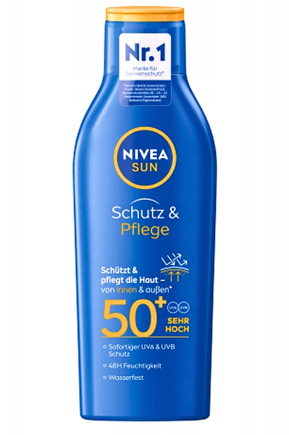 Nivea Sun protection and care: waterproof sun milk SPF 50, 48 hours moisture with vitamin E, 200 ml, NIVEA Sun protection and care sun milk with SPF 50 (very high), protects and cares for the skin from the inside and outside. NIVEA Sun sunscreen for 48 hours of moisture with vitamin E, immediate protection against UVA UVB rays. Protection and care: The waterproof sunscreen with SPF 50 protects the skin from the outside against UVA and UVB rays and hydrates the skin from the inside. Vitamin E: the nourishing formula of the NIVEA Sun sun cream hydrates for 48 hours and supports skin protection from within with the antioxidant vitamin E. - Waterproof formula: the waterproof, immediately effective formula offers protection against sunburn and skin aging and ensures a protected and soft skin feeling. The skin friendliness has been dermatologically tested. SAFETY WARNING none- Waterproof formula: the waterproof, immediately effective formula provides protection against sunburn and skin aging and ensures a protected and soft skin feeling. The skin friendliness has been dermatologically tested. Vitamin E: the nourishing formula of the NIVEA Sun sun cream hydrates for 48 hours and supports skin protection from within with the antioxidant vitamin E. Protection and care: the waterproof sun cream with SPF 50 protects the skin from the outside against UVA and UVB rays and hydrates the skin from within. NIVEA Sun protection and care sun milk for 48 hours of moisture with vitamin E, immediate protection against UVA UVB rays. NIVEA Sun Protect Care sun milk with SPF 50 (very high) – protects and cares for the skin from the inside and outside.Nivea Sun Protect Care Zonnebrandcrème, SPF 50, 48 uur vocht met vitamine E, verpakking van 6 stuks, 200 ml Nivea Zonbescherming en verzorging: watervaste zonnemelk SPF 50, 48 uur vocht met vitamine E, 200 ml, NIVEA Sun bescherming en verzorging zonnemelk met SPF 50 (zeer hoog), beschermt en verzorgt de huid van binnen en buiten. NIVEA Sun zonnebrandcrème voor 48 uur vocht met vitamine E, onmiddellijke bescherming tegen UVA- UVB-stralen. Bescherming en verzorging: de waterdichte zonnecrème met SPF 50 beschermt de huid van buitenaf tegen UVA- en UVB-stralen en hydrateert de huid van binnenuit. Vitamine E: de voedende formule van de NIVEA Sun zonnecrème hydrateert 48 uur en ondersteunt de huidbescherming van binnenuit met de antioxidant vitamine E. - Waterdichte formule: de waterdichte, direct effectieve formule biedt bescherming tegen zonnebrand en huidveroudering en zorgt voor een beschermd en zacht huidgevoel. De huidvriendelijkheid is dermatologisch getest. VEILIGHEIDSWAARSCHUWING geen- Waterdichte formule: de waterdichte, direct effectieve formule biedt bescherming tegen zonnebrand en huidveroudering en zorgt voor een beschermd en zacht huidgevoel. De huidvriendelijkheid is dermatologisch getest. Vitamine E: de voedende formule van de NIVEA Sun zonnecrème hydrateert 48 uur en ondersteunt de huidbescherming van binnenuit met de antioxidant vitamine E. Bescherming en verzorging: de waterdichte zonnecrème met SPF 50 beschermt de huid van buitenaf tegen UVA- en UVB-stralen en hydrateert de huid van binnenuit. NIVEA Sun bescherming en verzorging zonnemelk voor 48 uur vocht met vitamine E, onmiddellijke bescherming tegen UVA- UVB-stralen. NIVEA Sun Protect Care zonnemelk met SPF 50 (zeer hoog) – beschermt en verzorgt de huid van binnen en buiten.