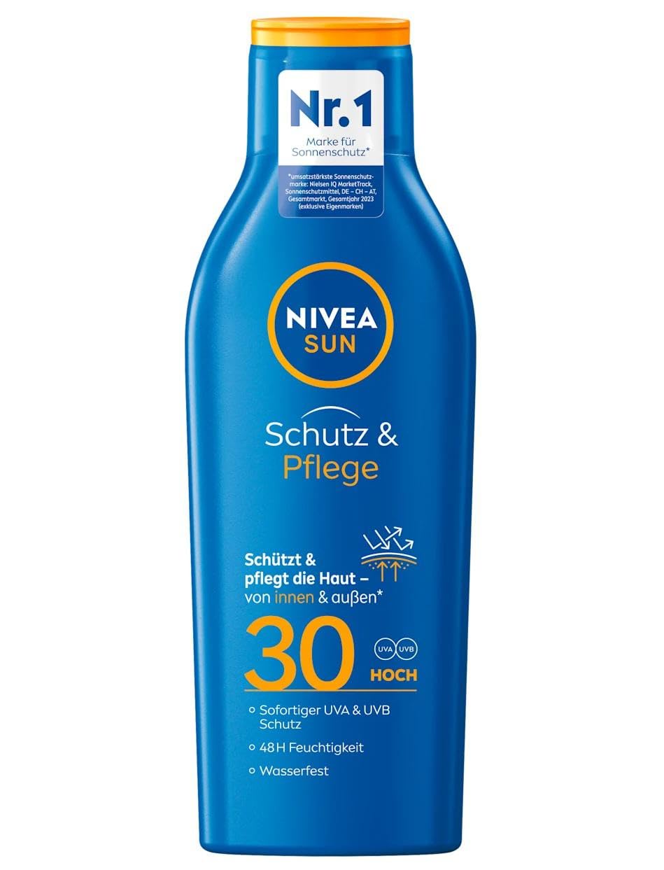 NIVEA Sun Sun Milk Protection Care SPF 30 for 48 hours of moisture - 250 ml The protection and care sun milk with protection factor 30 from NIVEA Sun protects the skin from the inside and outside. The skin is protected against UVA UVB rays and against sunburn and premature skin aging. In addition, the skin is hydrated for up to 48 hours. The 82 biodegradable sun milk is free of microplastics, parabens, mineral oil and PEG. SAFETY WARNING noneThe 82 biodegradable sun milk is free of microplastics, parabens, mineral oil and PEG. In addition, the skin is hydrated for up to 48 hours. The skin is protected against UVA UVB rays and against sunburn and premature skin aging. The protection and care sun milk with protection factor 30 from NIVEA Sun protects the skin from the inside and outside.NIVEA Sun Zonnemelk bescherming verzorging, SPF 30 voor 48 uur vocht, 250 ml, verpakking van 6 stuks NIVEA Sun Zonnemelk Bescherming Verzorging SPF 30 voor 48 uur vochtigheid - 250 ml De bescherming en verzorging zonnemelk met beschermingsfactor 30 van NIVEA Sun beschermt de huid van binnen en buiten. De huid wordt beschermd tegen UVA- UVB-stralen en tegen zonnebrand en vroegtijdige huidveroudering. Bovendien wordt de huid tot 48 uur lang gehydrateerd. De 82 biologisch afbreekbare zonnemelk is vrij van microplastics, parabenen, minerale olie en PEG. VEILIGHEIDSWAARSCHUWING geenDe 82 biologisch afbreekbare zonnemelk is vrij van microplastics, parabenen, minerale olie en PEG. Bovendien wordt de huid tot 48 uur lang gehydrateerd. De huid wordt beschermd tegen UVA- UVB-stralen en tegen zonnebrand en vroegtijdige huidveroudering. De bescherming en verzorging zonnemelk met beschermingsfactor 30 van NIVEA Sun beschermt de huid van binnen en buiten.
