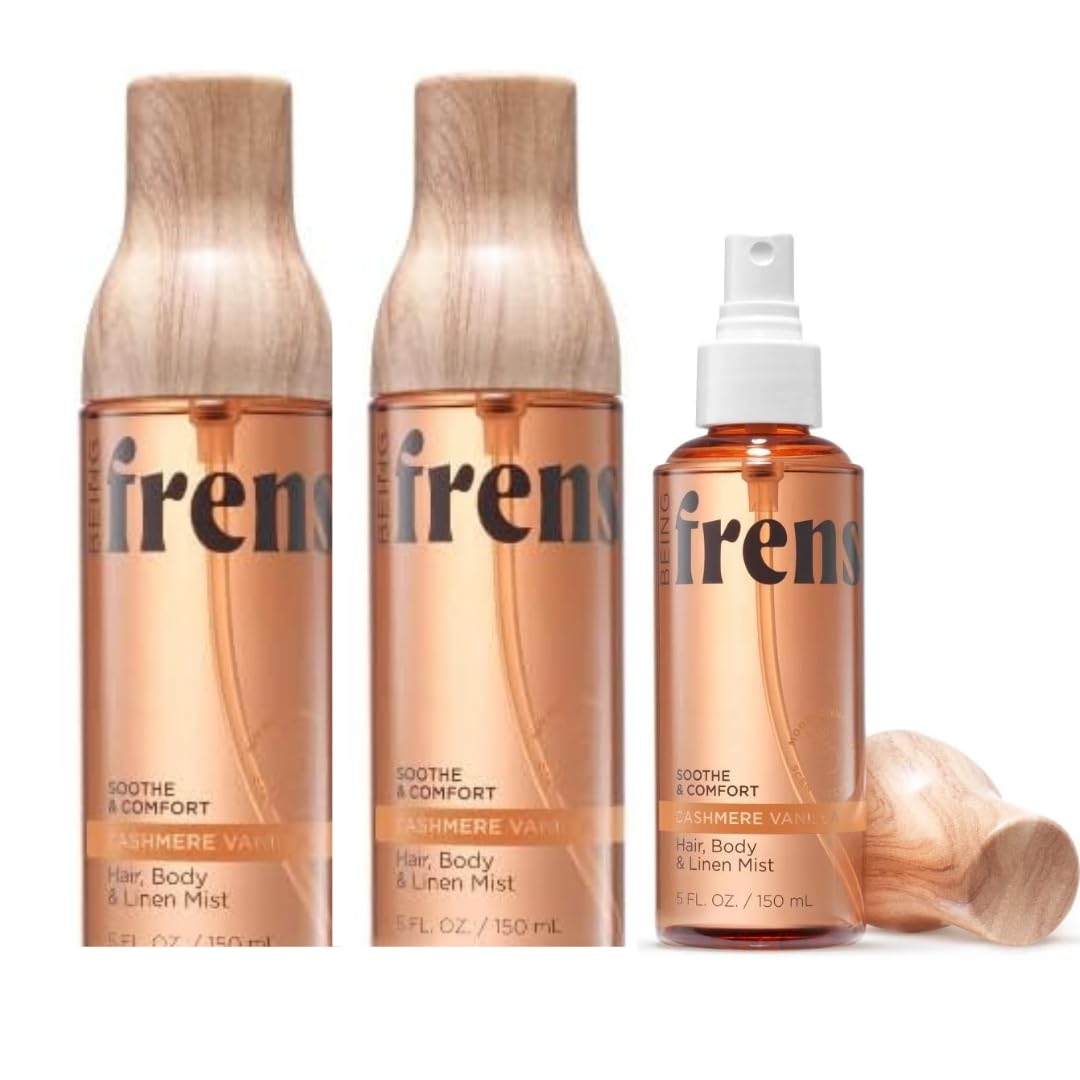 Experience Everyday Luxury with Being Frenshe Cashmere Vanilla Mist Indulge your senses with the soothing and versatile Being Frenshe Cashmere Vanilla Hair, Body & Linen Mist. This refreshing spray is expertly crafted with calming essential oils to provide a touch of elegance to your daily routine. Versatile Use: Perfectly designed to refresh your hair, body, and linens, giving everything a delicate and long-lasting fragrance. Luxurious Scent: Immerse yourself in the warm, comforting aroma of Cashmere Vanilla, a blend that soothes and uplifts. Clean Formula: Infused with high-quality essential oils, this mist is thoughtfully crafted to be gentle on your skin and the environment. Convenient 5 fl oz Size: Ideal for at-home indulgence or on-the-go use, ensuring you’re always enveloped in its sophisticated scent. Pack of 3: Stock up on your favorite mist or share the experience with loved ones. Transform your self-care moments with this multi-purpose mist that creates a tranquil and aromatic ambiance wherever you go.