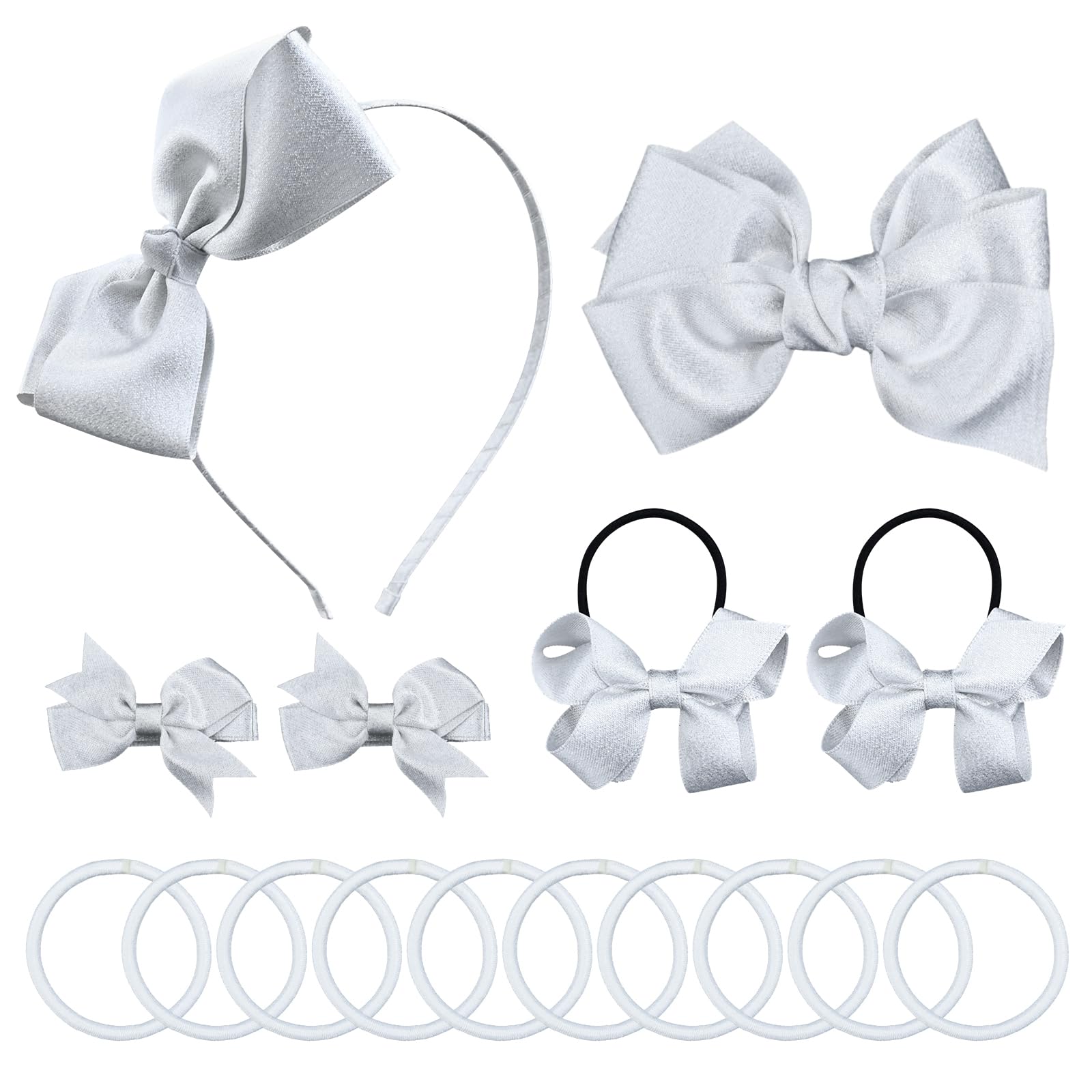 Bekecidi 16 Pieces Cloth Bow Hair Accessories Set Bow Hairpin Bow Hair Clips Bow Rubber Band Bow Head band for Girls Kids (White)