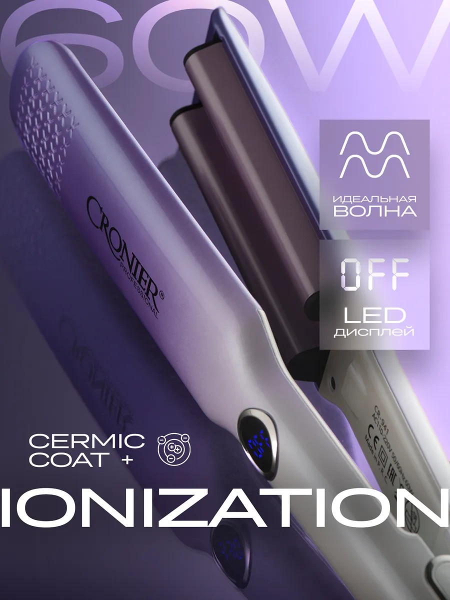 Тройная плойка стайлер, который поможет создать эффектные пляжные волны и крупные локоны. Утюжок идеально подходит для укладки как длинных, так и коротких волос, позволяя легко формировать красивые кудри и гофре. Щипцы имеют три рабочих пластины с керамическим покрытием, что обеспечивает равномерное нагревание и быстрое выполнение укладки. Благодаря ионизации, щипчики не повреждают структуру волос, сохраняя их здоровье и блеск. Имеет удобный формат и легкий вес, что делает процесс создания кудрявого образа простым и комфортным.