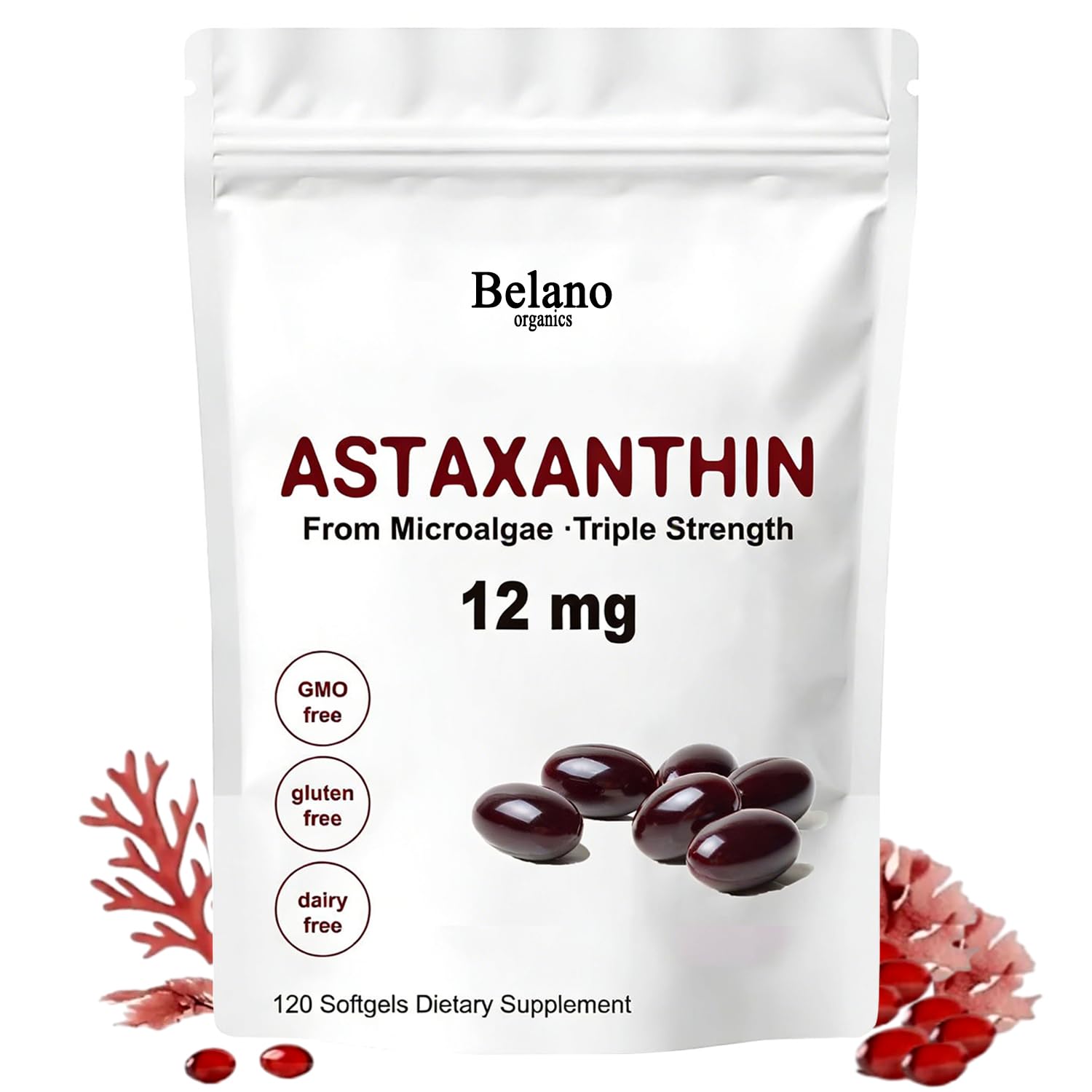 Belano Astaxanthin 12mg Premium Astaxanthin Antioxidant Supplements Supports face Skin Immune 120 Softgels 4 Month Supply