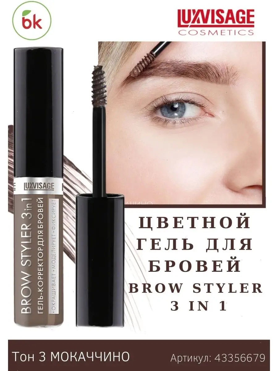 Цветной гель-корректор для бровей с микрофиброй Brow Styler 3 in 1от белорусского бренда декоративной косметики Luxvisage (Люксвизаж). Брови - важнейшая часть нашего лица. Они являются частью уникального образа каждого из нас, привлекают внимание и подчёркивают нашу красоту. Оттеночный гель придает бровям выразительность и естественный ухоженный вид, обеспечивая фиксацию волосков. Придает бровям дополнительный объем и густоту, заполняет пробелы. Профессиональная щеточка-стилист тщательно прокрашивает волоски и моделирует форму бровей, а особые микроволокна в составе геля придают бровям объем и густоту. Стойкая гелевая текстура отлично фиксирует их и сохраняет форму, при этом не склеивает и не создает эффект «мокрых волосков». Гель представлен в 4 оттенках, подходящих к любому натуральных цвету волос. С помощью щеточки аккуратно прокрасьте брови гелем по направлению роста волосков и придайте желаемую форму. С гелем-корректором BROW STYLER ваши брови ухоженные, четкие и естественные!