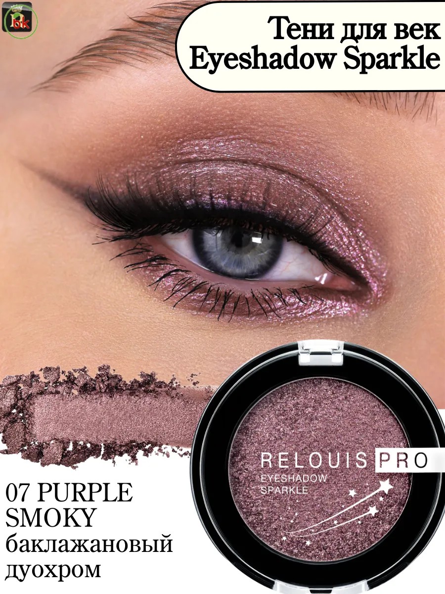 EYESHADOW SPARKLE shimmering eyeshadow from the Belarusian decorative cosmetics brand Relouis. The silky texture of these powdered shadows applies easily with a single swipe, is clump-free, and sparkles, providing a stunning, radiant daytime look and a duochrome, star-like shimmer for unforgettable evening looks. These highly pigmented colored shadows apply easily and without flaking. The shimmering shadows layer evenly and blend to your desired density—from a bright glow to a delicately luminous veil. Seven shades of incredible shimmering shadows. A wow effect with just one swipe!