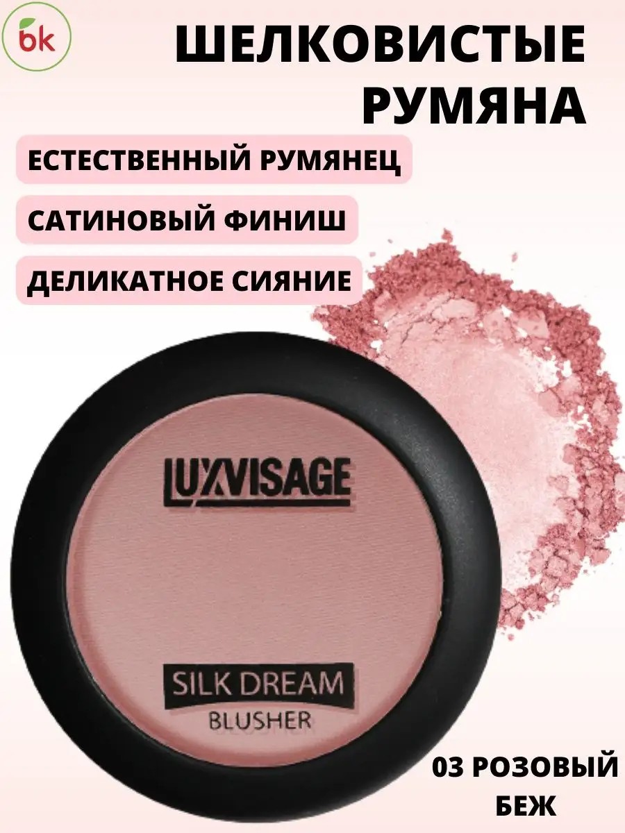 Шелковистые румяна для лица Silk Dream от белорусского бренда декоративной косметики Luxvisage (Люксвизаж) просто идеально созданы для повседневного макияжа! Стойкая формула румян прекрасно продержаться в течение дня, что особенного актуально для современной девушки. Универсальные натуральные оттенки сухих румян не только прекрасно освежают и придают отдохнувший и ухоженный вид, но и помогают мягко скорректировать форму и подчеркнуть контуры лица. Благодаря пудровой текстуре ультратонкого помола румяна ровно ложатся на кожу шелковистой вуалью, легко поддаются наслаиванию и безупречно растушевываются, позволяя регулировать плотность покрытия от полупрозрачного до среднего. Нежные и невесомые, словно шелк, легко и равномерно наносятся и великолепно растушевываются, придавая коже естественный здоровый румянец и деликатное сатиновое свечение. Особенности: Средняя пигментация, нежные оттенки, стойкость более 4 часов. Нанесите румяна пушистой кистью на яблочки щек по направлению к уху и тщательно растушуйте.