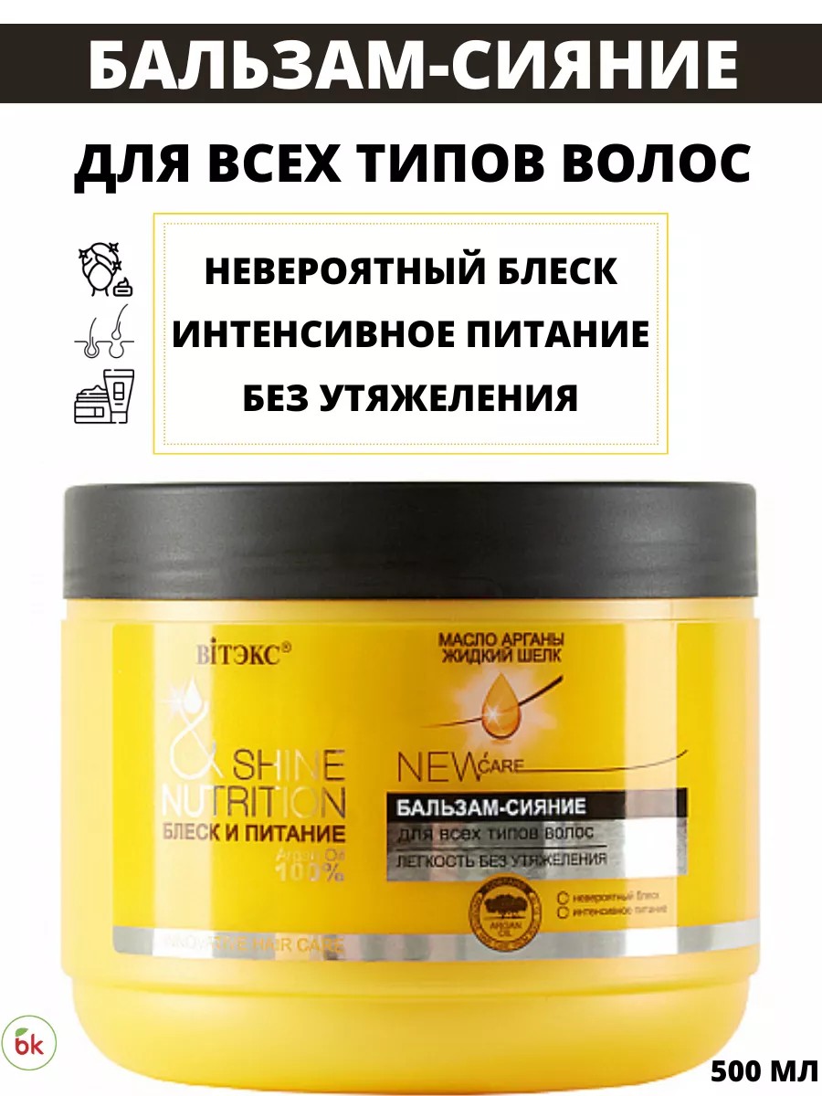 Бальзам-сияние «Масло арганы + жидкий шелк» — это универсальное средство для всех типов волос от белорусского бренда Витэкс. Его особая формула обеспечивает волосам полноценный уход, делая их невероятно красивыми и здоровыми.