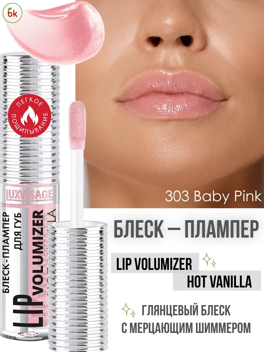 Блеск для губ увеличивающий LIP volumizer hot vanilla от белорусского бренда декоративной косметики Luxvisage (Люксвизаж). Плампер создает временный эффект увеличения объема, делает контур более четким, разглаживает мелкие морщинки, усиливает яркость пигмента губ за счет согревающего действия. Формула с экстрактом ванили создает блестящий тепловой эффект с легким пощипыванием, увеличивает кровообращение, стимулирует выработку коллагена и эластина. Блеск-плампер обладает anti - age бьюти эффектом. Нюдовые оттенки с мерцанием придает губам соблазнительный влажный глянцевый блеск и роскошное сияние, дополнительный объем и гладкость. Комфортная нелипкая, полу прозрачная текстура легко наносится, долго держится, не растекается. С помощью аппликатора равномерно нанесите небольшое количество оттеночного блеска на всю поверхность губ. Не наносите на поврежденную кожу губ.
