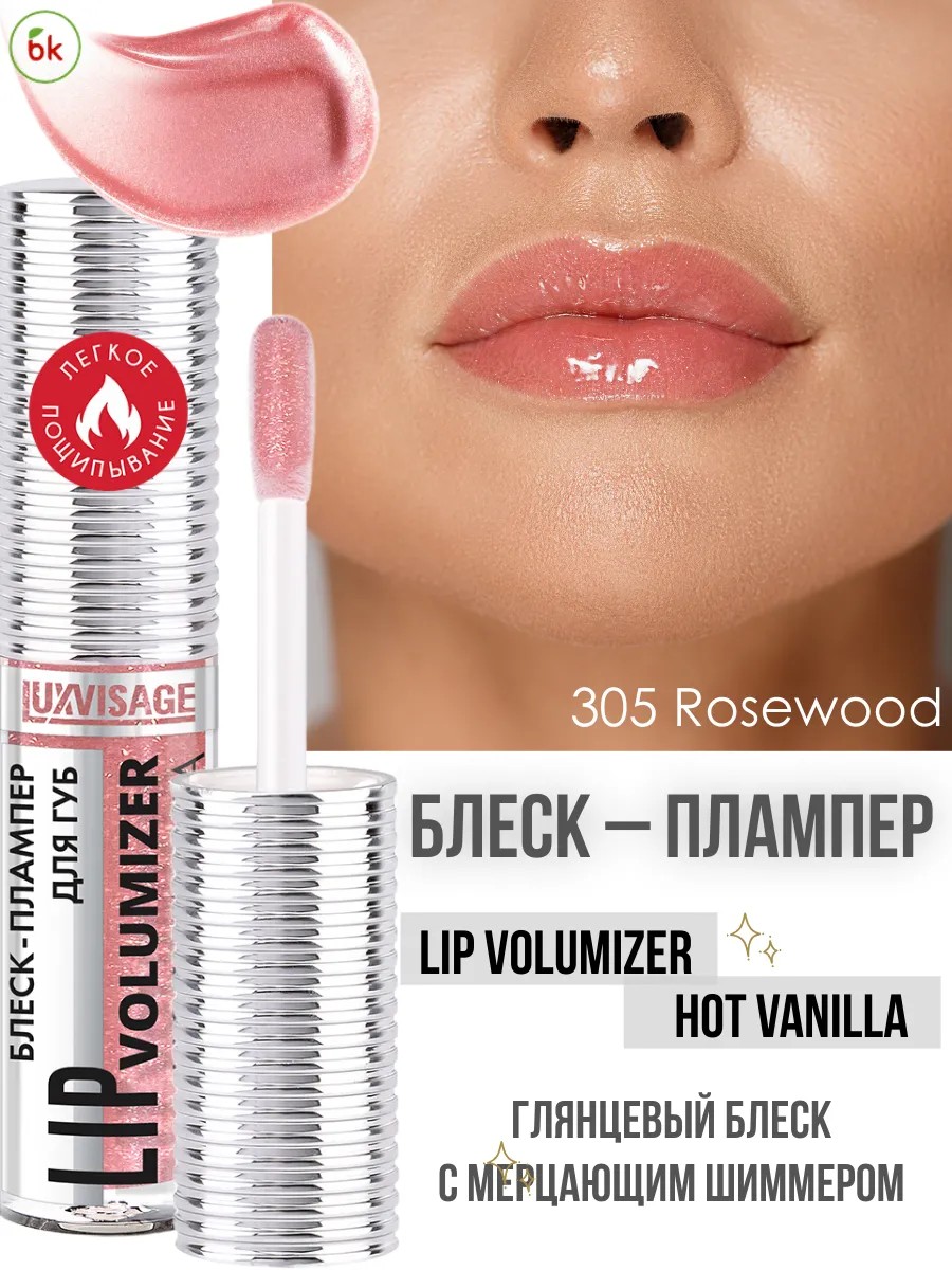 Блеск для губ увеличивающий LIP volumizer hot vanilla от белорусского бренда декоративной косметики Luxvisage (Люксвизаж). Плампер создает временный эффект увеличения объема, делает контур более четким, разглаживает мелкие морщинки, усиливает яркость пигмента губ за счет согревающего действия. Формула с экстрактом ванили создает блестящий тепловой эффект с легким пощипыванием, увеличивает кровообращение, стимулирует выработку коллагена и эластина. Блеск-плампер обладает anti - age бьюти эффектом. Нюдовые оттенки с мерцанием придает губам соблазнительный влажный глянцевый блеск и роскошное сияние, дополнительный объем и гладкость. Комфортная нелипкая, полу прозрачная текстура легко наносится, долго держится, не растекается. С помощью аппликатора равномерно нанесите небольшое количество оттеночного блеска на всю поверхность губ. Не наносите на поврежденную кожу губ.