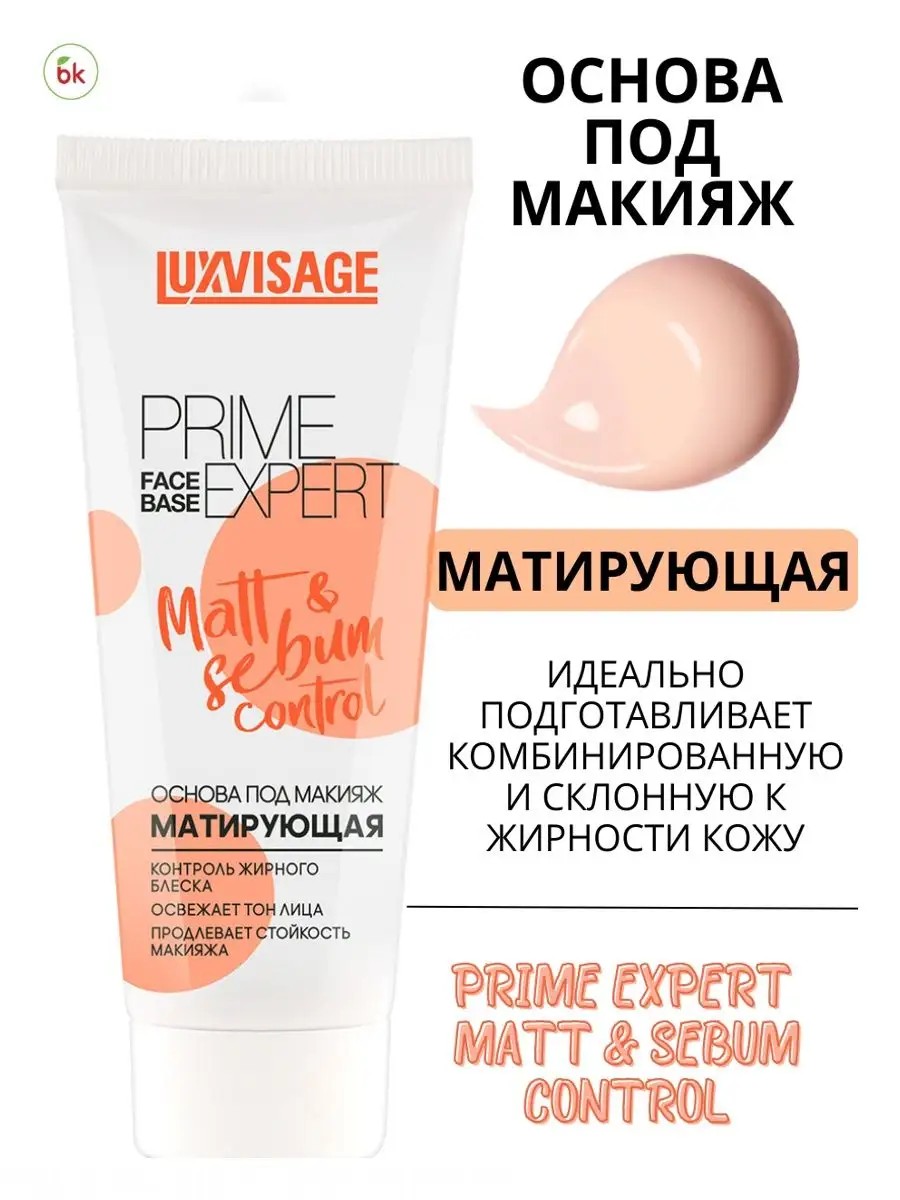 Основа под макияж матирующая PRIME EXPERT Matt & sebum control от белорусского бренда декоративной косметики Luxvisage (Люксвизаж). База идеально подготавливает комбинированную и склонную к жирности кожу к нанесению тональных средств. Делает кожу безупречно матовой, гладкой и бархатистой. Специальный комплекс компонентов впитывает излишки кожного сала, устраняет жирный блеск и регулирует выработку себума в течение дня. При этом средство не сушит, не стягивает, не подчеркивает текстуру кожи. Благодаря содержанию высококачественных пигментов бежево-персикового цвета основа корректирует тусклый цвет кожи, выравнивает тон лица, скрывает признаки усталости и придает лицу свежий и здоровый вид. Эффективно выравнивает рельеф кожи, сглаживает расширенные поры и мелкие морщинки. Обеспечивает легкое и равномерное нанесение тонального крема или пудры.