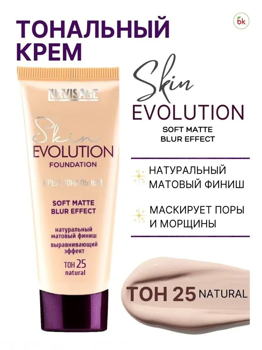 Тональный крем SKIN EVOLUTION SOFT MATTE BLUR EFFECT от белорусского бренда LUXVISAGE идеально сливается с кожей, создавая комфортное невесомое покрытие. Он придает лицу естественный матовый финиш, сохраняя максимальную естественность макияжа. Легкая текстура легко распределяется и наслаивается, позволяя добиться покрытия нужной плотности – от среднего до плотного.