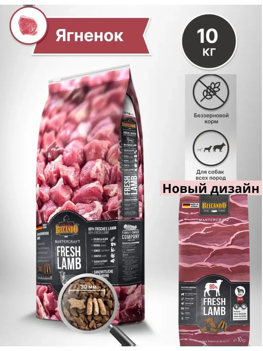 Belcando Mastercraft Fresh Lamb – полноценный корм для взрослых собак. Упаковка 10 кг. Для Белькандо обрабатывается только свежее мясо и не используется предварительно высушенная мясная мука, которая даже используется в других высококачественных сухих кормах. Достигнута подготовка, которая ранее считалась невозможной. Благодаря особенно щадящей технологии Fresh Meat свежее мясо перерабатывается непосредственно в крокеты. Это позволяет экономить этапы предварительной сушки, а используемые ингредиенты остаются свежими вплоть до обработки. Это единственный способ гарантировать, что полный мясной вкус вашей собаки раскрывается позже в каждой крокете. Поставляемый ответственный рацион, свежий, натуральный и сбалансированный, улучшающий качество жизни вашей собаки. В корме используется высококачественное, минимально обработанное сырье со всеми его натуральными компонентами в качестве источников белков, жиров и углеводов. Но собаки питаются не только мясом, поэтому с такой же тщательностью отбираются и растительные ингредиенты, такие как амарант, фасоль и нут. В дополнение к этим основным источникам питательных веществ также используются специально подобранные ингредиенты, которые дополняют питательный профиль продукта, а в некоторых случаях содержат вещества, повышающие жизненный тонус и улучшающие самочувствие собак, которые их потребляют. Мы поставляем ответственный рацион, свежий, натуральный и сбалансированный, улучшающий качество жизни вашей собаки. Состав: 80 % свежий ягненок + Водоросли хлореллы – богаты натуральными активными ингредиентами + Ягоды – Вкусный микс из ягод + Овощи – Содержит ценные пищевые волокна + Травы – Для большего вкуса + Экстракт оливы – богат антиоксидантами = целостное питание. Гарантия на продукт: рецепт без круп и без картофеля; без использования мясной муки; без использования искусственных красителей, ароматизаторов и консервантов. Корм Belcando будет лучшим подарком для Вашего питомца.