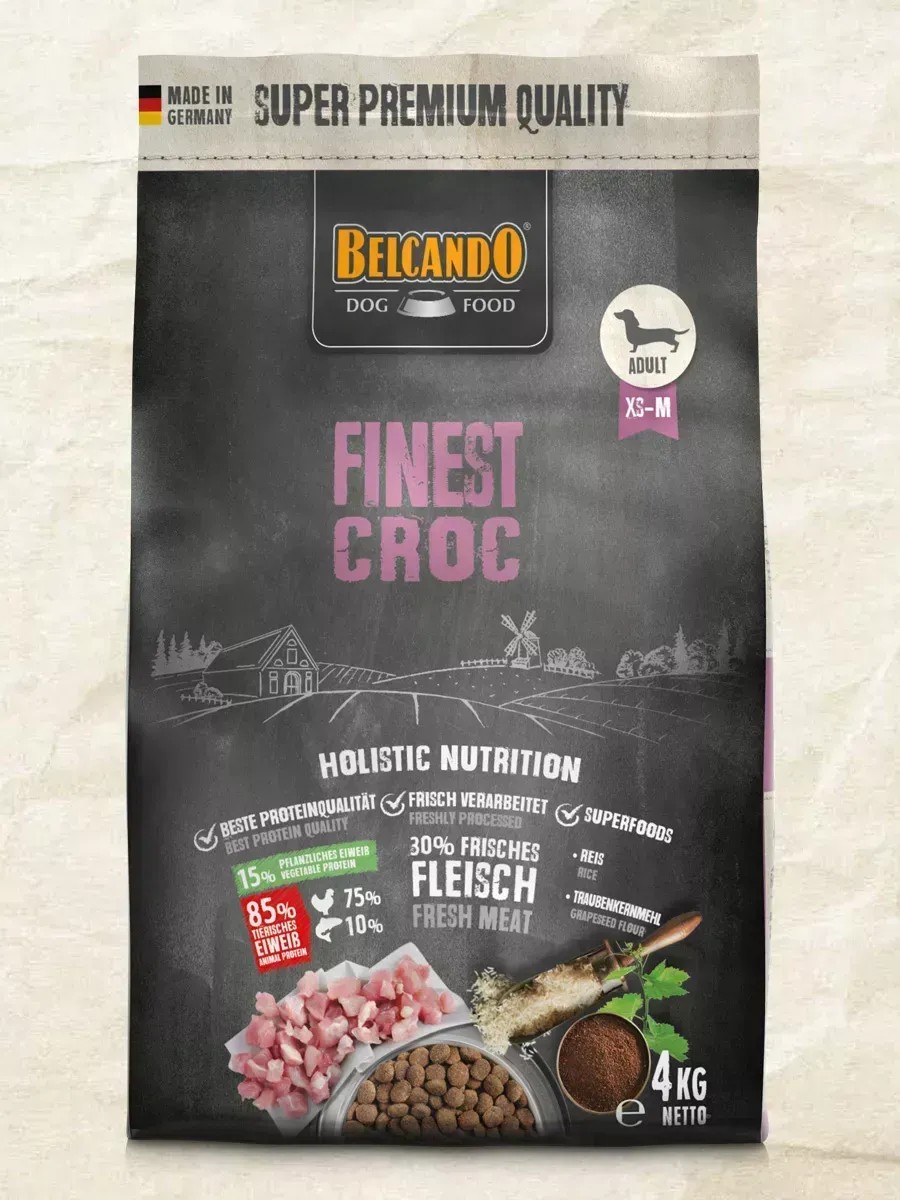 Belcando Finest Croc Duck Dry Dog Food 4 kg is a balanced and nutritious diet designed specifically for adult and senior dogs of all breeds.