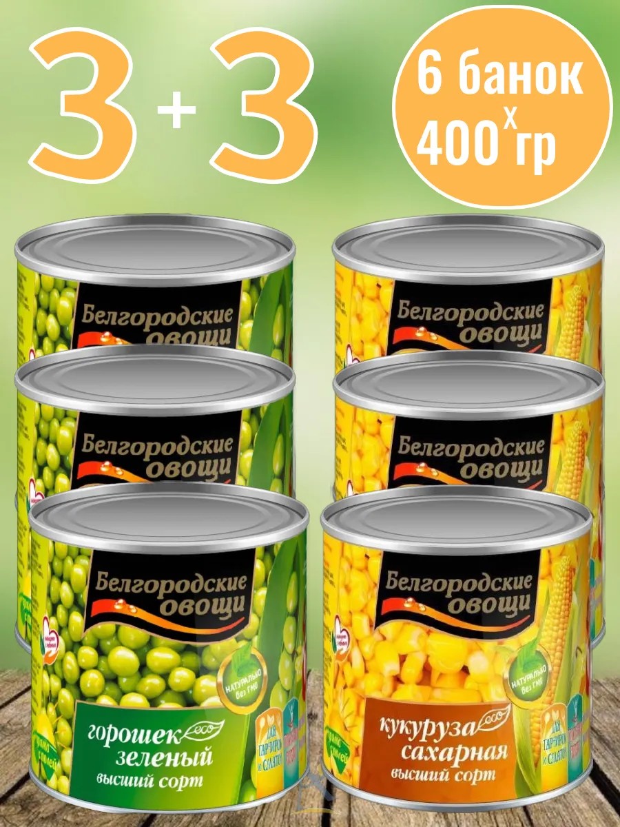 Белгородские овощи Горошек и кукуруза консервированные 6*400 г