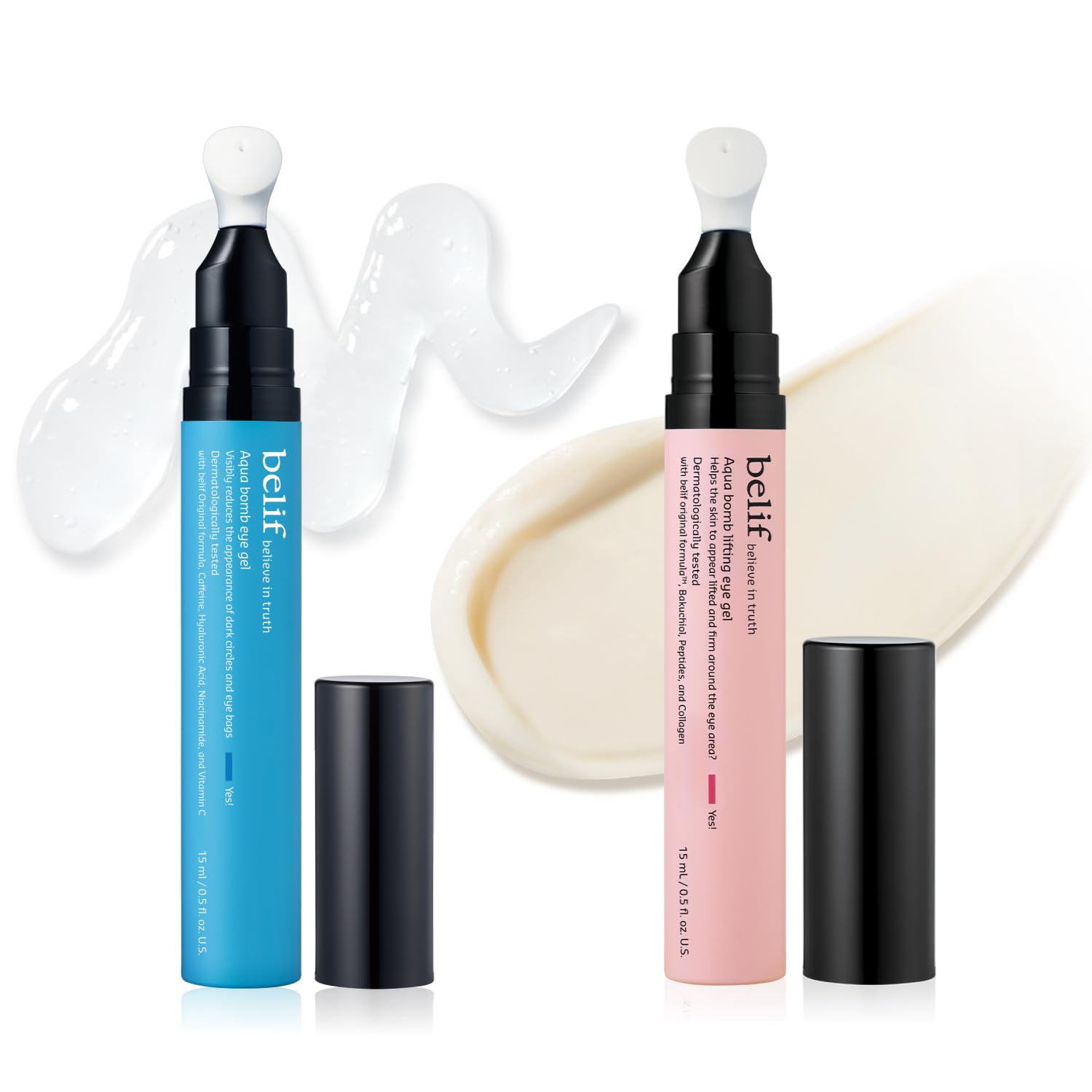 belif Aqua Bomb Eye Gel Duo - Cooling & Firming Eye Gel with Niacinamide Caffeine and Retinol for Instant De-puffing Visible Firming and Anti-Aging Eye Care