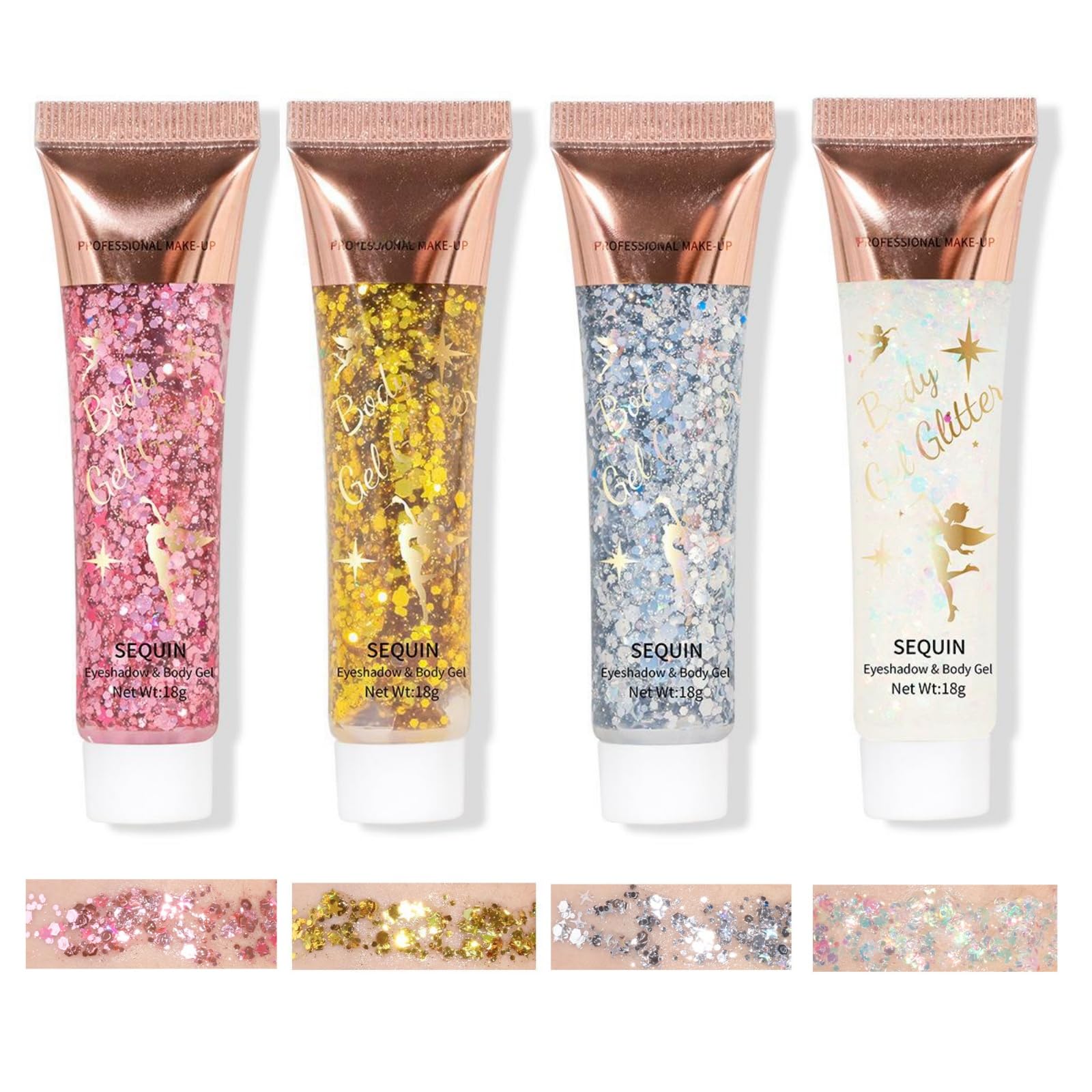 Widely applicable: This glitter kit can be applied to multiple areas, including the eyes, lips, face, hair, collarbones, and shoulders. It's perfect for a wide range of events such as banquets, weddings, parties, performances, stages, and bars, where it helps you attract attention and add glamour. You can easily create intricate designs or broad coverage, as it adapts perfectly to your needs. Easy application with gel formula: The gel texture of this glitter makes it incredibly easy to apply, allowing for smooth and precise placement on the skin without mess or complications. It adheres securely without additional glue, reducing the risk of fall-off. The gel ensures quick drying and comfortable application, making it ideal for both beginners and professionals. Safe and gentle: Made with hypoallergenic and low-irritation ingredients, this glitter gel is suitable for all skin types, including sensitive skin, ensuring a smooth and comfortable experience. Its safety and durability provide reliable performance in various conditions. Made from lightweight and durable materials, it guarantees a vibrant and long-lasting finish without feeling heavy or clumpy. Multiple color options: Available in a versatile range of shades, it offers endless creative possibilities for different occasions and styles. Each color is formulated to provide intense shine that complements various skin tones and outfits. The packaging is designed for convenience and storage, so you can keep your glitter collection organized and ready to sparkle at any moment. Brilliant holographic effect: This glitter gel features a unique holographic design that changes color and brightness depending on the viewing angle, creating a mesmerizing, laser-like shine. The glitter and sequin particles are carefully crafted to reflect light beautifully, adding a dazzling touch to your look and enhancing your natural beauty with their multidimensional, eye-catching appeal.Lot de 4 gels à paillettes pour le corps, fards à paupières liquides à paillettes durables, gel à paillettes épaisses, kit de maquillage pour fêtes et festivals (lot B)Largement applicable : ce kit de paillettes peut être appliqué sur plusieurs zones, y compris les yeux, les lèvres, le visage, les cheveux, les clavicules et les épaules. Il est parfait pour une large gamme d'événements tels que les banquets, mariages, fêtes, spectacles, scènes et bars, où il vous aide à attirer l'attention et à ajouter du glamour. Vous pouvez facilement créer des motifs complexes ou une large couverture, car ils s'adaptent parfaitement à vos besoins. Application facile avec formule gel : la texture en gel de ce brillant le rend incroyablement facile à appliquer, ce qui permet un placement doux et précis sur la peau sans salir ni complications. Adhère en toute sécurité sans colle supplémentaire, ce qui réduit le risque de chute. Le gel assure un séchage rapide et une application confortable, ce qui le rend idéal pour les débutants et les professionnels. Sûr et doux : fabriqué avec des ingrédients hypoallergéniques et peu irritants, ce gel pailleté convient à tous les types de peau, y compris les peaux sensibles, garantissant une expérience douce et confortable. La sécurité et la durabilité offrent des performances fiables dans diverses conditions. Fabriqué à partir de matériaux légers et durables, il garantit une finition vibrante et durable sans sensation de lourdeur ni de grumeaux. Plusieurs options de couleurs : disponible dans une gamme polyvalente de nuances, vous offre une infinité de possibilités créatives pour différentes occasions et styles. Chaque couleur est formulée pour fournir une brillance intense qui complète divers tons de peau et tenues. L'emballage est conçu pour plus de commodité et de rangement, afin que vous puissiez garder votre collection de paillettes organisée et prête à tout moment pleine d'éclat. Effet holographique brillant : ce gel à paillettes présente un design holographique unique qui change de couleur et de luminosité selon l'angle de vue, créant une brillance fascinante similaire à celle du laser. Les paillettes et les particules de paillettes sont soigneusement élaborées pour refléter la lumière magnifiquement, ajoutant une touche éblouissante à votre look et rehaussant votre beauté naturelle avec leur attrait multidimensionnel et accrocheur.