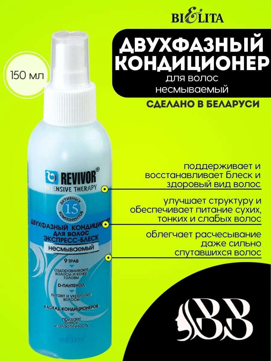 Двухфазный кондиционер для волос «Экспресс-блеск» несмываемый, 150 мл от Bielita – ваш секрет сияющих и здоровых волос!