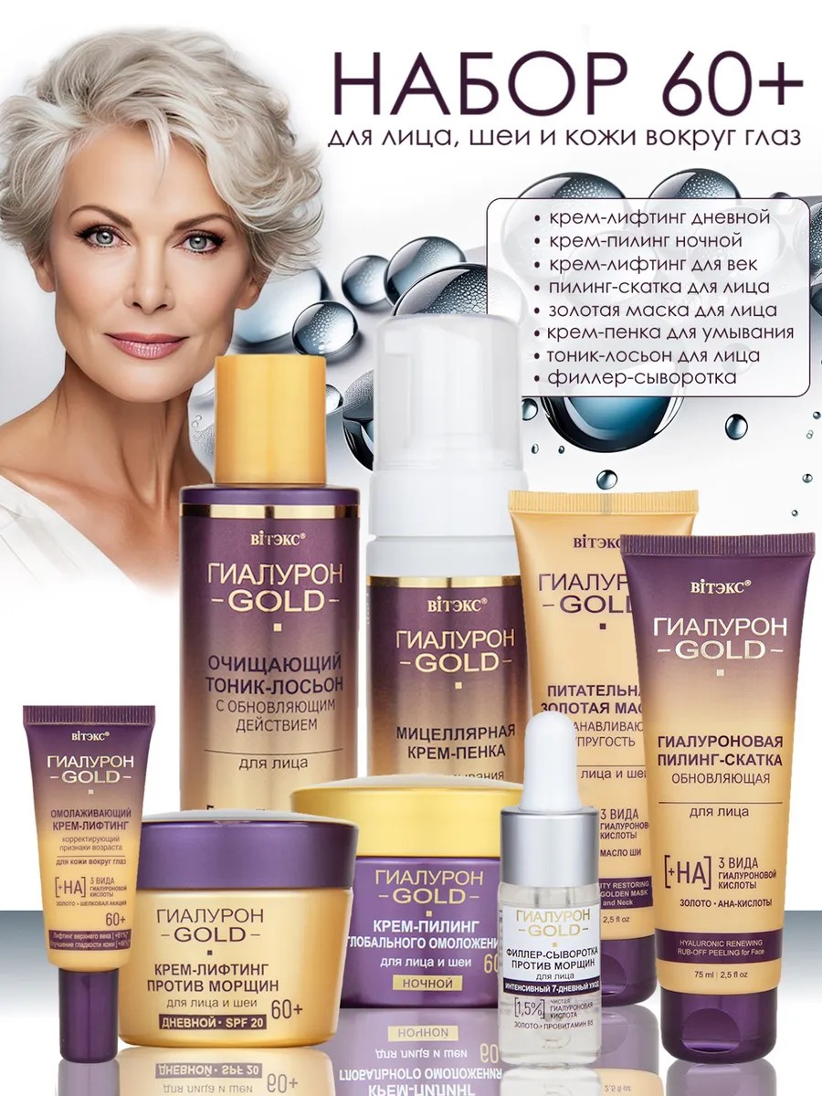 Косметический набор Гиалурон GOLD для зрелой кожи включает 8 средств: