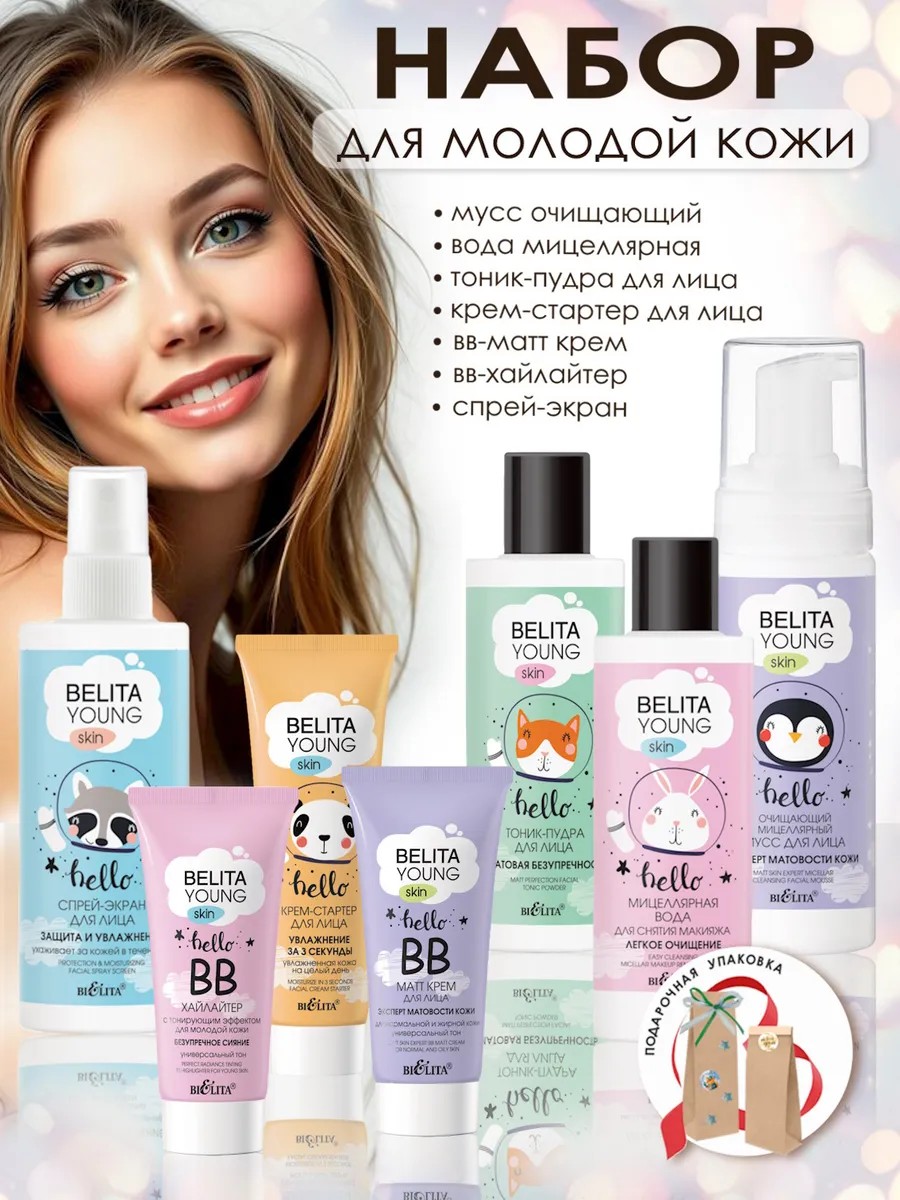Косметический набор для молодой кожи включает 7 средств: