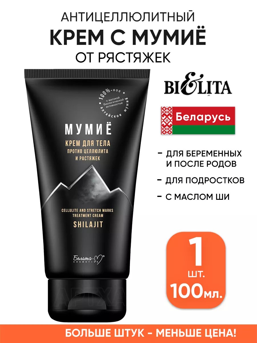 Представляем вам антицеллюлитный легендарный крем бреда Белита от растяжек с натуральным маслом ши и алтайским мумиё. Производитель из Беларуси Belita - vitex разработал действенное средство, расщепляющее жир и от целлюлита. Крем подходит как при беременности, как и в борьбе с послеродовыми изменениями тела, безопасно для подростков.