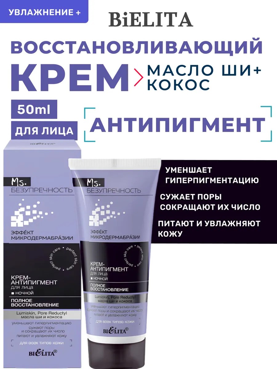 Белита Ms. Безупречность КРЕМ-АНТИПИГМЕНТ для лица ночной Полное восстановление 50мл туба
