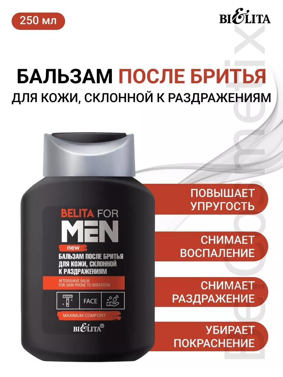 Бальзам после бритья для кожи, склонной к раздражениям, стал вашим надежным союзником в уходе за чувствительной кожей. Разработанный специально для тех, кто сталкивается с раздражениями после бритья, этот бальзам предоставляет нежное и успокаивающее воздействие. Его уникальная формула включает в себя успокаивающие экстракты ромашки и лаванды, которые снимают покраснения и уменьшают воспаление. Эти активные ингредиенты призваны уменьшить дискомфорт и предотвратить появление покраснений и зуда, обеспечивая вашей коже нежность и защиту. Бальзам также обладает легкой текстурой, которая моментально впитывается, не оставляя жирной пленки. Это особенно важно для тех, кто ценит легкость и свежесть на своей коже. Без спирта в составе, он не вызывает дополнительного сушения и раздражения, делая процесс ухода после бритья максимально мягким. Аромат бальзама приятно дополняет ощущение уюта и расслабленности. Регулярное использование этого бальзама поможет вашей коже стать менее чувствительной к воздействию лезвия бритвы, сделает ее более мягкой и увлажненной. Вперед, наслаждайтесь комфортом и защитой с бальзамом для кожи, склонной к раздражениям, и дарите своей коже заслуженное уходное блаженство. Бальзам предназначен для бережного ухода после бритья. Он разработан для чувствительной и легко раздражаемой кожи. Активные компоненты обеспечивают мягкий уход после бритья, снимают воспаление и покраснение, повышают упругость и эластичность, уменьшают раздражение. Нежный уход бальзама обеспечивает комфорт после бритья позволяя вашей коже выглядеть и чувствовать себя прекрасно! Новинка от Белиты. Прекрасный подарок на 23 февраля-День защитника отечества, День рождения и просто так, чтобы порадовать себя!