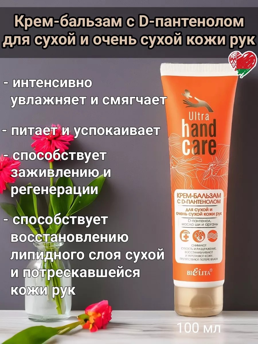 Крем-бальзам с D-пантенолом от БЕЛИТА - это универсальное ухоженое средство для рук, созданное для успокоения, заживления и восстановления кожи. Без УФ-защиты, он подходит для ежедневного использования в любое время года. Состав включает в себя Aqua (Water), Cetearyl Alcohol, Ethylhexyl Isononanoate, Isopropyl Palmitate, Lanolin, Divinyldimethicone/Dimethicone Copolymer, C12-13 Pareth-23, C12-13 Pareth-3, Ceteareth-25, Melissa Officinalis Extract, Ceteareth-6, Stearyl Alcohol, Butyrospermum Parkii (Shea) Butter, Phenoxyethanol, Methylparaben, Ethylparaben, Propylparaben, Panthenol, Ammonium Acryloyldimethyltaurate, что делает его идеальным выбором для сухой, нормальной и проблемной кожи. Эффективный компонент D-пантенол способствует быстрому восстановлению кожи, оставляя её мягкой и увлажнённой.