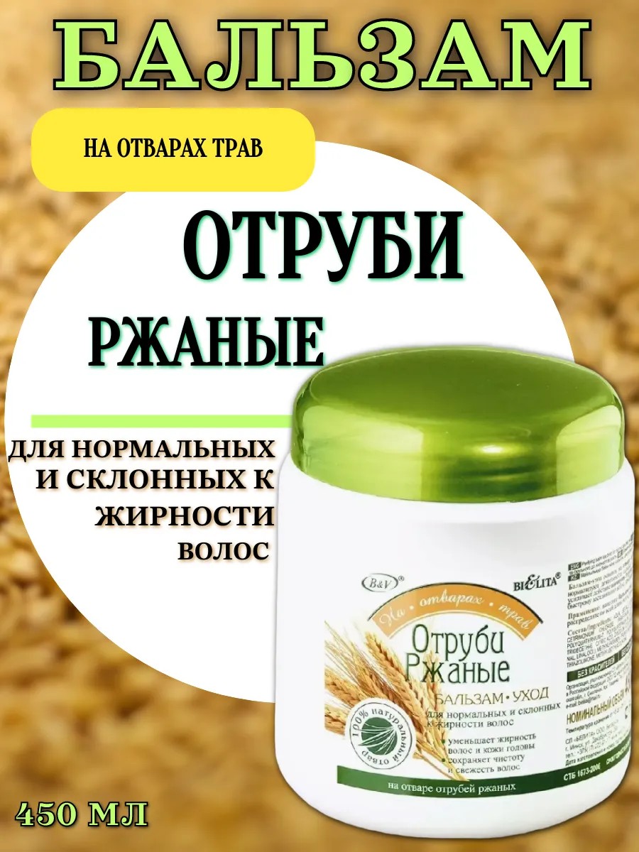Belita Herbal Balm "Rye Bran" 450 ml - This treatment is based on a rye bran decoction, which actively normalizes the sebaceous glands of the scalp. This herbal balm reduces the oiliness of the hair and scalp.