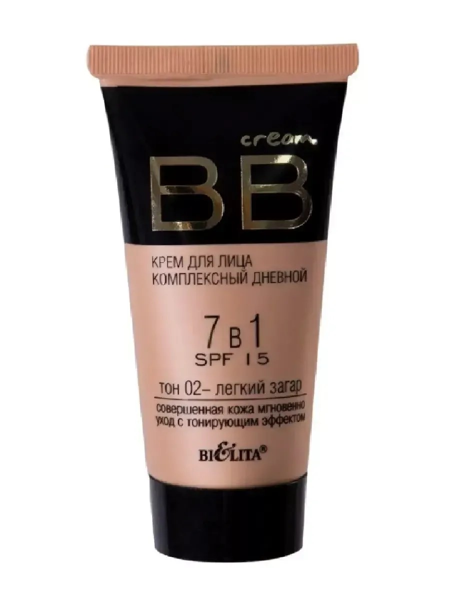 Белита BB-Крем для лица 7в1 тон 02 легкий загар SPF15, 30 мл. BB cream - крем для лица комплексный дневной. Очевидное преимущество - больше не нужно наносить на лицо несколько средств дневной крем + тональный крем, создавая многочисленные слои - достаточно только ВВ крема! Специально разработанная формула для максимального комфорта в течение всего дня! ВВ крем от Белита сочетает 7 функций в одном креме: Безупречно выравнивает тон и поверхность кожи Интенсивно увлажняет Активно питает Разглаживает морщинки Придаёт сияние коже Защищает кожу от солнечных лучей
