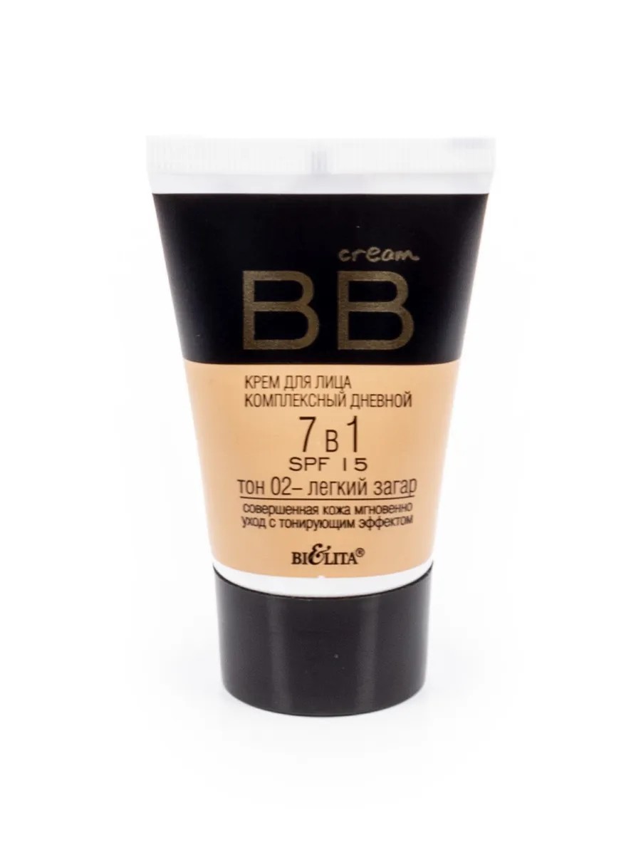 Белита BB-крем для лица комплексный дневной 7в1 SPF15 для любого типа кожи кремовый, тон 02 легкий загар 30мл / декоративная косметика.