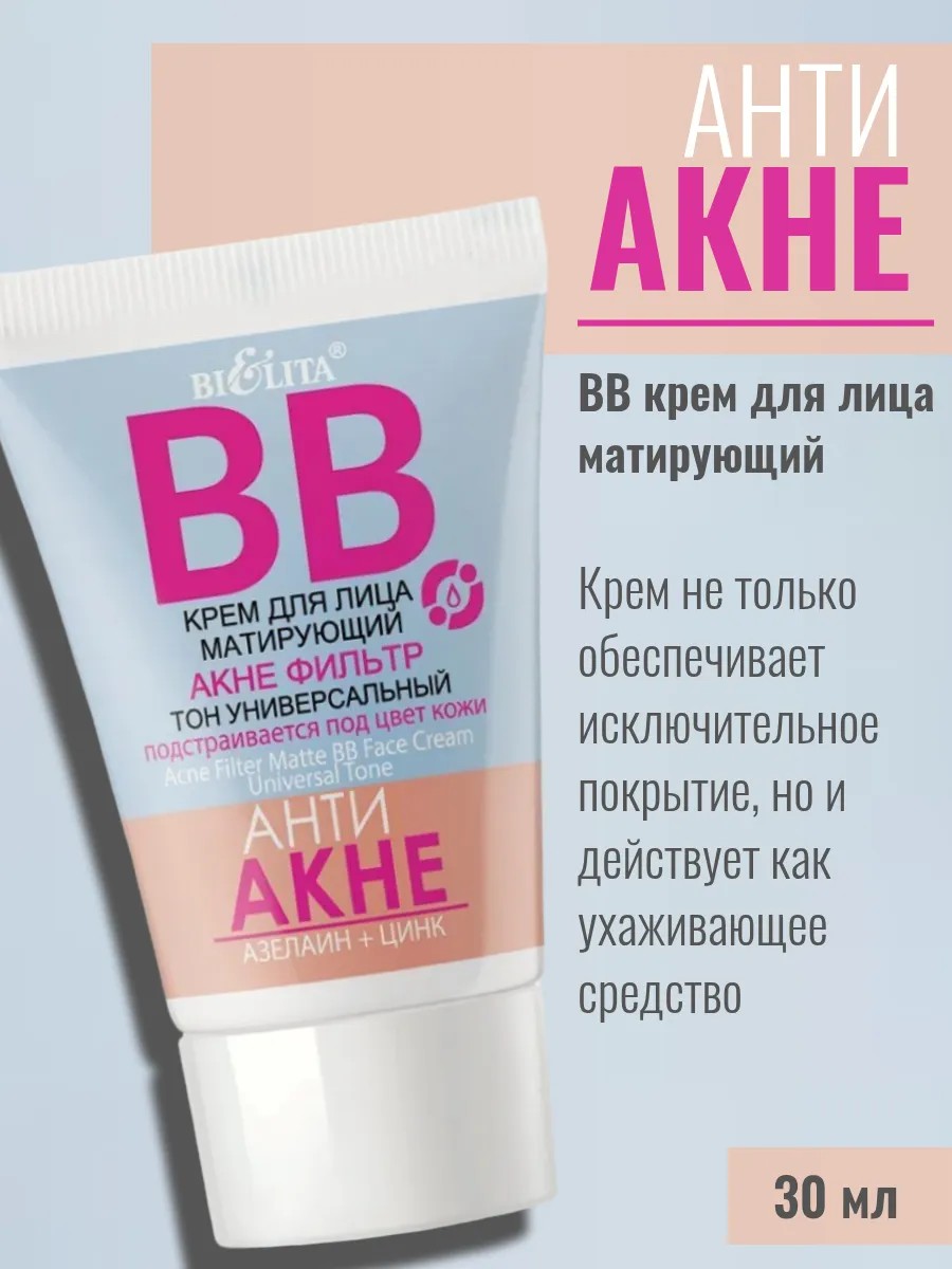 Белита Анти Акне Азелаин+Цинк Крем-BB для лица 30мл Матирующий, универсальный.