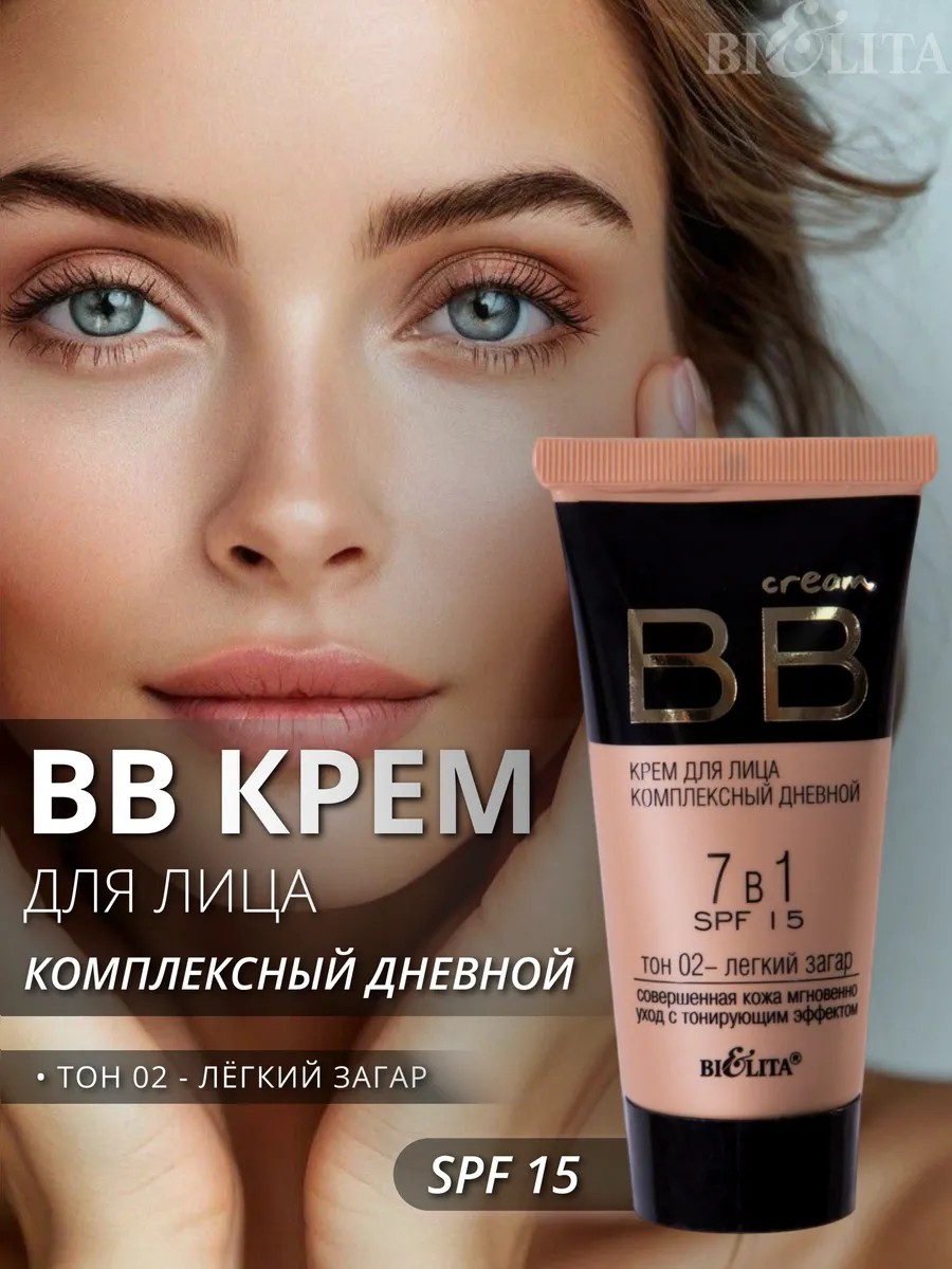 BB-крем для лица комплексный дневной 7 в 1 с защитой от солнца SPF 15 тон 02 легкий загар от белорусского бренда косметики Белита!
