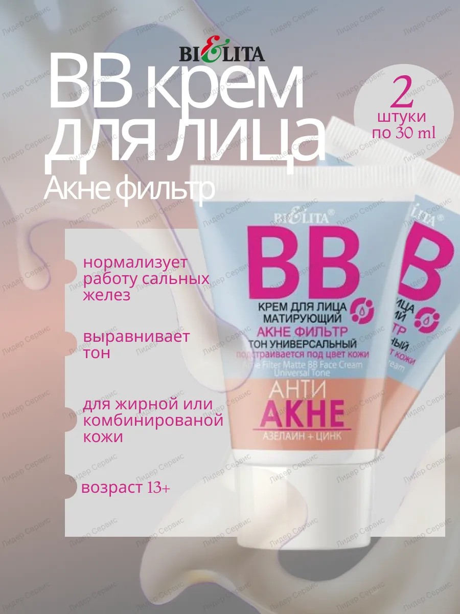 БЕЛИТА BB крем для лица матирующий Анти Акне 2 шт тон универсальный