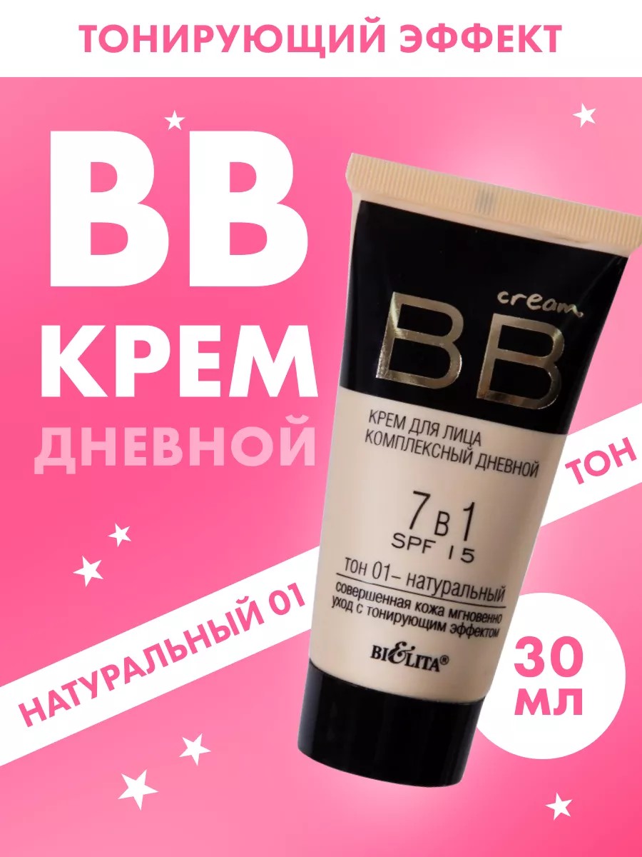 Очевидное преимущество комплексного дневного ВВ крема для лица Belita (Bielita) ВВ cream 7 в 1 SPF 15 - больше не нужно наносить на лицо несколько средств (дневной крем + тональный крем), создавая многочисленные слои - достаточно только ББ крема! Специально разработанная формула для максимального комфорта в течение всего дня. ВВ крем от Белита (Биелита) сочетает 7 функций в одном креме: безупречно выравнивает тон и поверхность кожи, интенсивно увлажняет, активно питает, разглаживает морщинки, придаёт сияние коже, защищает кожу от солнечных лучей. Пожалуйста, не стесняйтесь оставлять отзывы! Мы очень внимательно относимся к качеству товаров и обязательно дадим вам обратную связь.