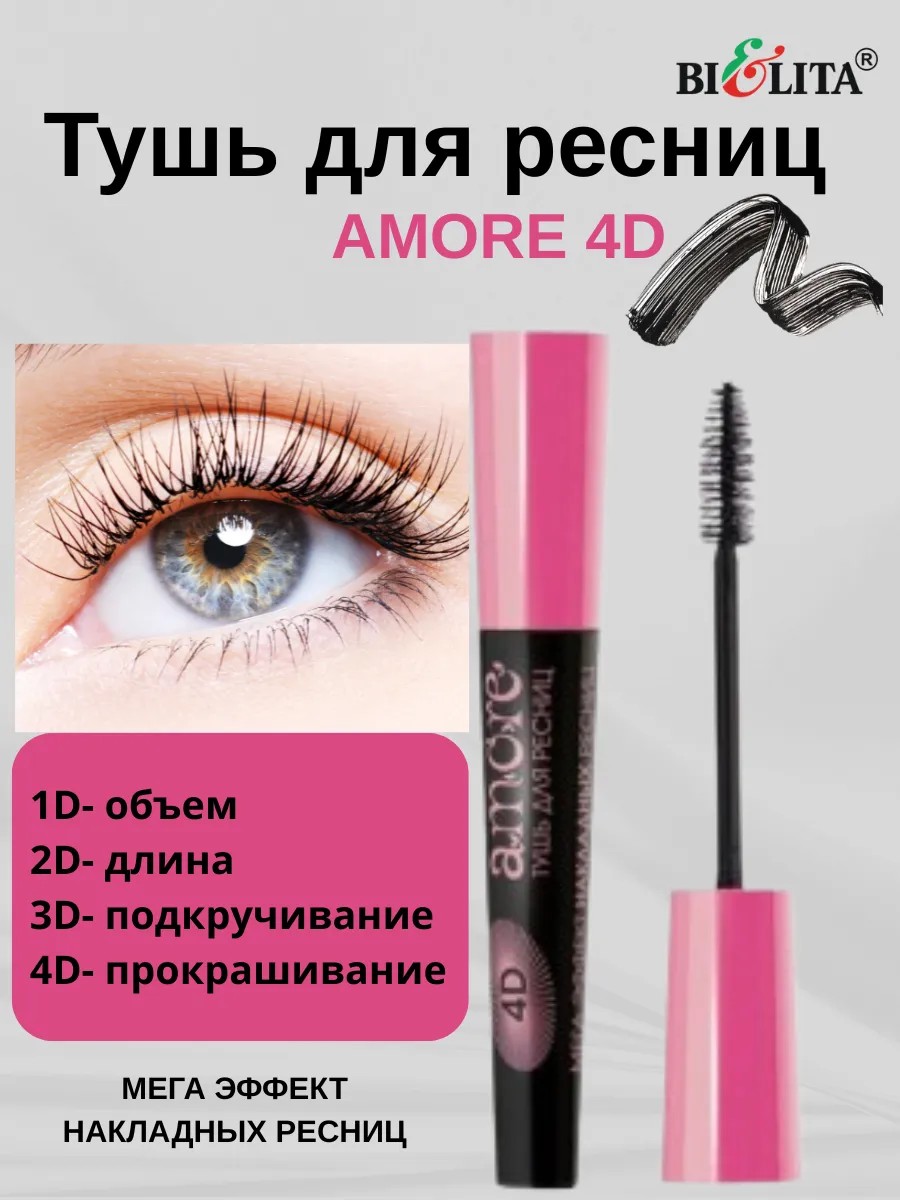 Откройте для себя великолепие и ухоженность ваших глаз с этой удивительной косметикой. Черная тушь для роскошных ресниц 4D эффект AMORE от белорусского бренда БЕЛИТА — это профессиональное средство, которое стало настоящим фаворитом среди женщин и девушек, стремящихся создать шикарный макияж глаз с эффектом накладных ресниц без комочков и склеивания.